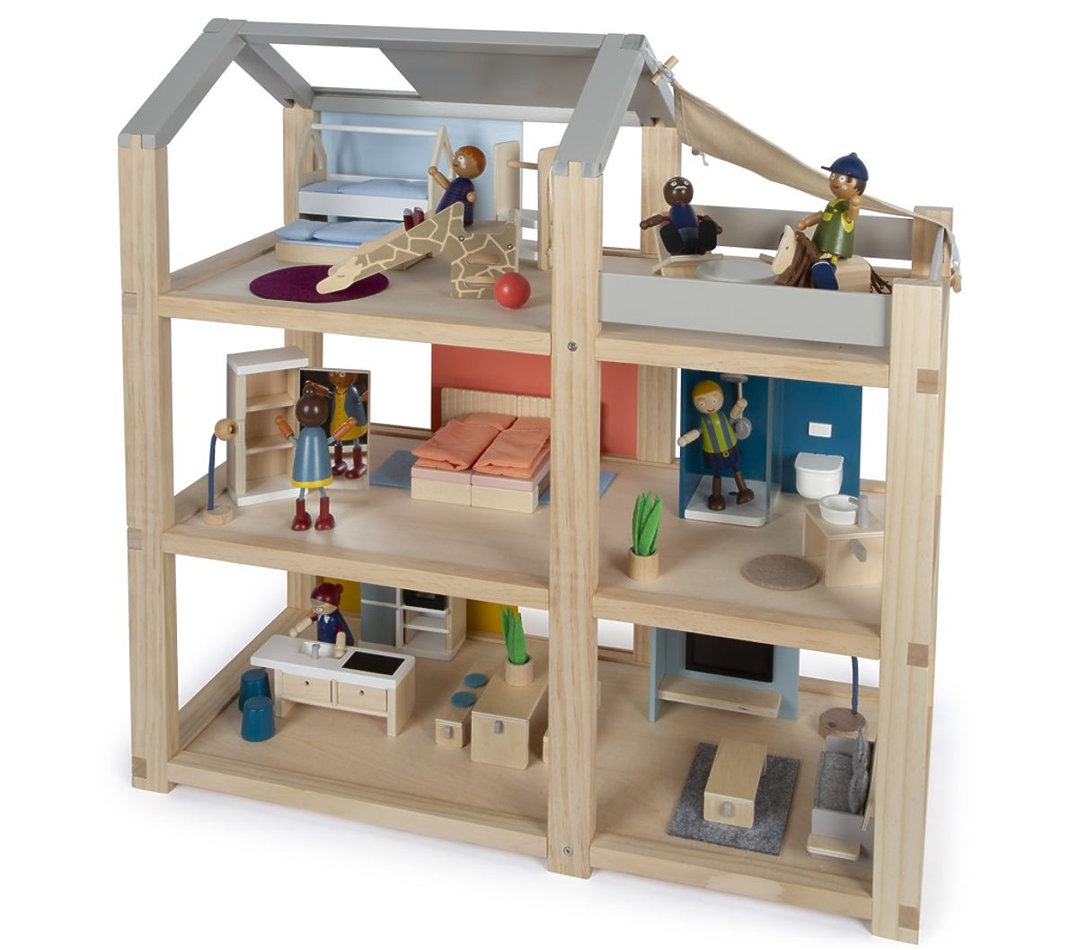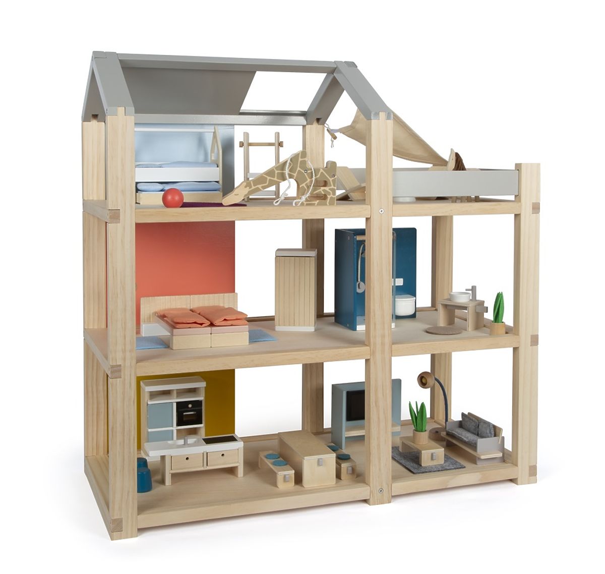 Tento velký dřevěný domeček pro panenky ve skandinávském stylu se třemi podlažími a prostornou střešní terasou se stane nejen zábavnou a kreativní hračkou, ale .. více