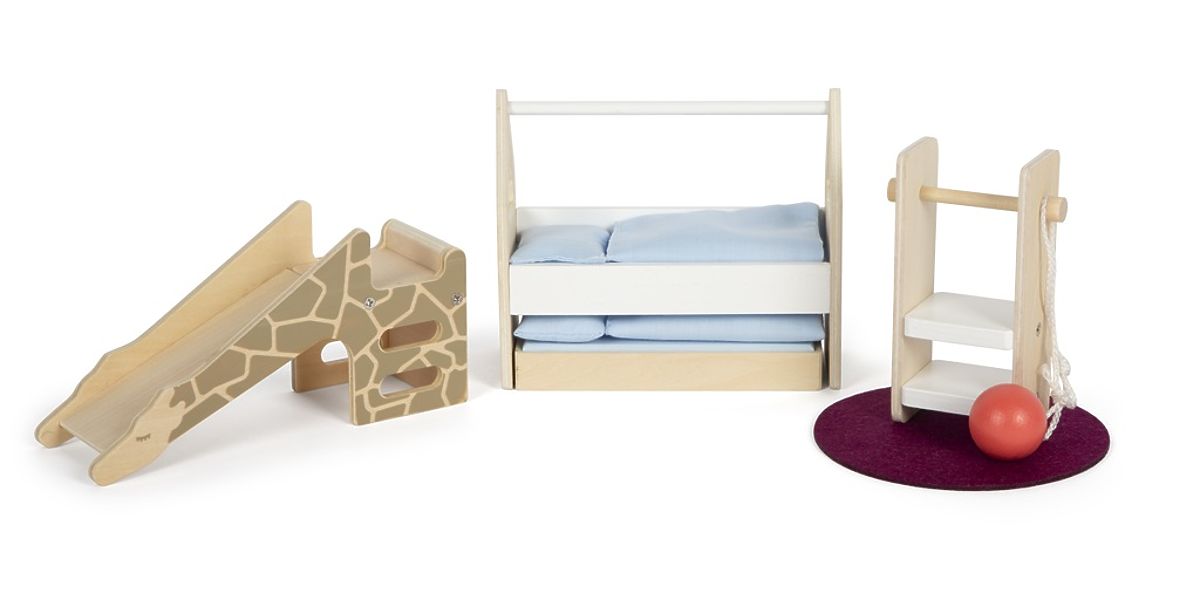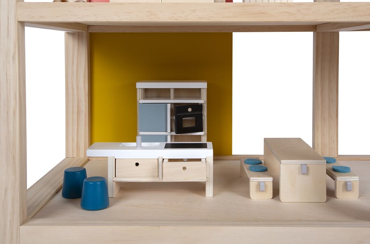 Tento velký dřevěný domeček pro panenky ve skandinávském stylu se třemi podlažími a prostornou střešní terasou se stane nejen zábavnou a kreativní hračkou, ale také interiérovým doplňkem, který se bude vyjímat v každém pokojíčku. Domeček má tři podlaží. Skládá se z útulné ložnice, dětského pokoje se žirafí skluzavkou, stylové koupelny, moderní kuchyně, okouzlující jídelny, útulného obývacího pokoje, prostorné střešní terasy a je kompletně zařízen detailně propracovaným nábytkem pro panenky. Díky posuvným zadním stěnám je možné znovu a znovu měnit vzhled interiéru. Stěny jsou totiž oboustranně použitelné, z jedné strany mají vzhled přírodního dřeva, z druhé strany jsou opatřeny barevným nátěrem. Domeček je ihned připraven ke hře – není už potřeba žádné další příslušenství. Hlavní vlastnosti: pro panenky 12 cmprostorné pokoje a velká střešní terasaplně vybaven nábytkemotevřená přední stěna usnadňuje hruzábavná a kreativní hračkavkusný interiérový doplněkpodporuje kreativitu a zlepšuje prostorové vnímánípodporuje rozvoj motorických, řečových a sociálních dovedností