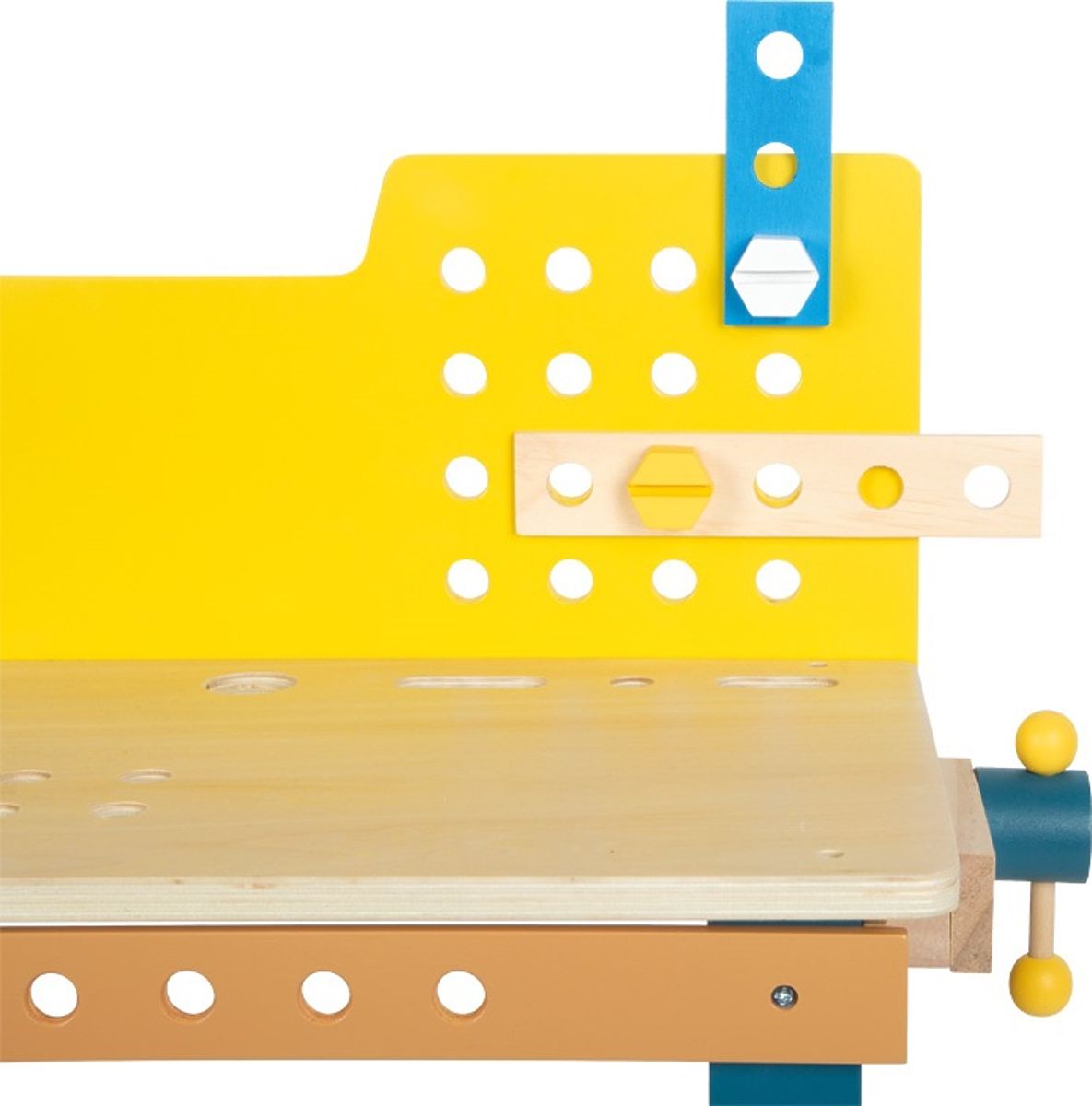 V dílně je pořád tolik práce! S tímto kompaktním pracovním stolem s integrovaným svěrákem a úložným prostorem mohou děti otestovat své šikovné ručičky při zatloukání, řezání a šroubovávání šroubů. Realisticky navržené příslušenství a nářadí včetně kladívka, klíče, šroubováku, svěráku a pilky přinášejí zábavu při hraní a motivují děti ke kreativitě a fantazii. Velké množství příslušenství sestávající ze šroubů, matic, ozubených kol, sady podložek a perforovaných destiček v různých tvarech a velikostech umožňuje dětem vytvořit si vlastní projekty nebo postavit malé závodní auto dle přiloženého návodu.Otvory na přední a zadní straně a také na pracovní desce lze použít k připevnění příslušenství k pracovnímu stolu pomocí šroubů. Hraním s nářadím a díky kutilství děti trénují motorické dovednosti a koordinaci ruka-oko, hravou formou se učí používat nástroje a získávají manuální zručnost. Sada obsahuje: pracovní stůl se svěrákem, kladívko, klíč, šroubovák, pilku, 2 velké perforované destičky, 1 střední perforovanou destičku, 2 malé perforované destičky, 2 perforované destičky ve tvaru diamantu, 2 čtvercové perforované destičky, 9 šroubů, 3 hřebíky, 6 matic, 3 ozubená kola, 2 tenké podložky a 4 silné podložky. Hlavní vlastnosti: učí děti používat nářadítrénuje jemnou a hrubou motorikurozvíjí koordinaci ruka-oko a manuální zručnostskvělý doplněk k dalším produktům řady Nordic a Miniwob Dokumentace: návod k sestavení (DE, EN, FR, IT, ES)návod k sestavení - auto
