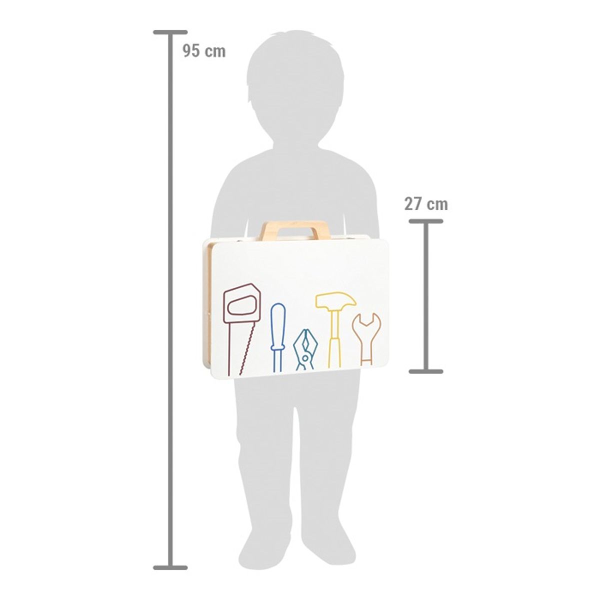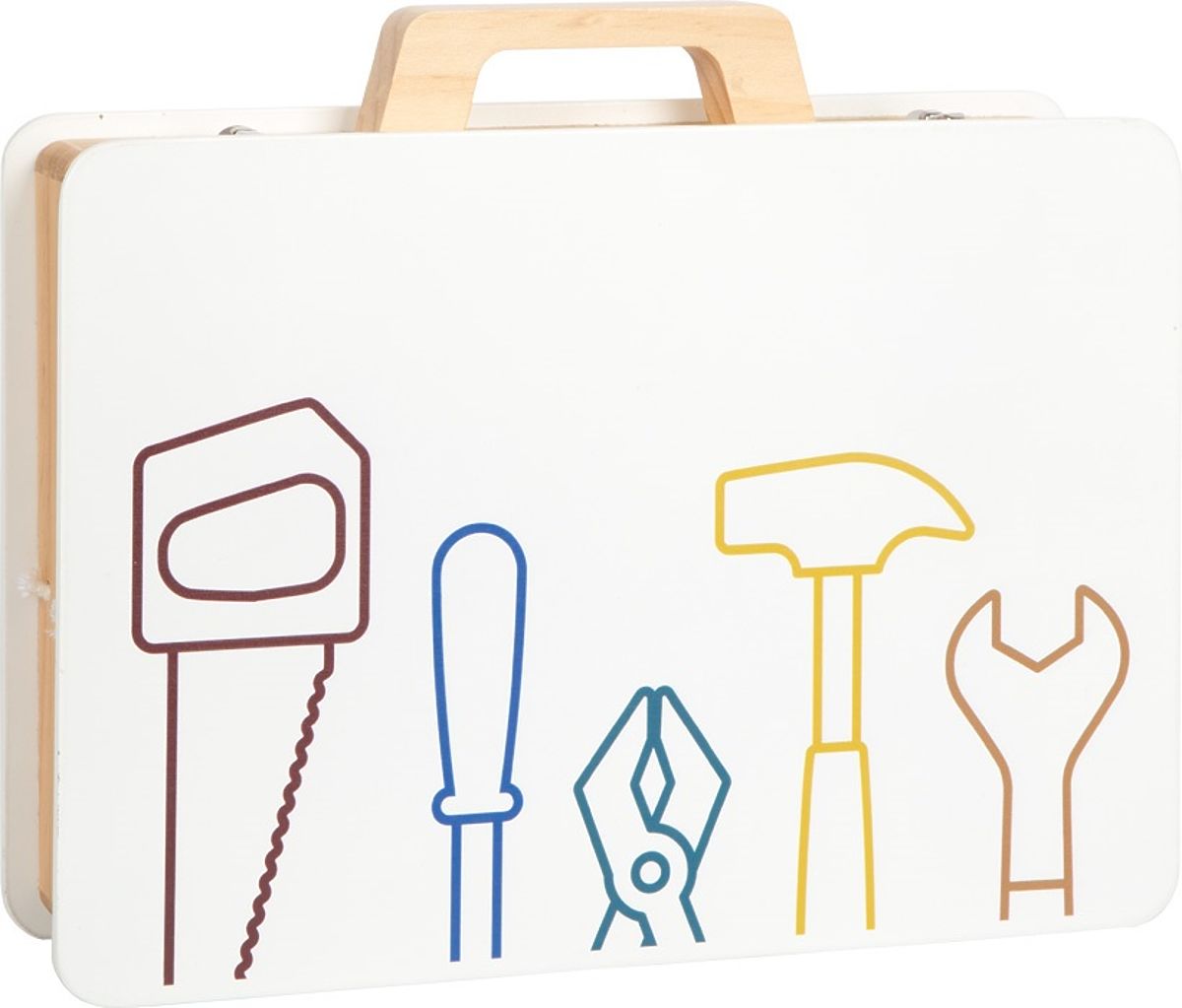 Pozor všichni malí řemeslníci i řemeselnice! S tímto dřevěným kufříkem si děti mohou hrát na kutily. Realistické nářadí a doplňky vybízejí ke kreativní hře a rozvojí fantazii. Pomocí jednotlivých stavebnicových dílků mohou děti poskládat rozmanité konstrukce (např. závodní auto, vrtulník, větrný mlýn nebo letadlo) a rozvíjet tak svou zručnost. Pevný a odolný kufřík je uvnitř vybaven gumovými popruhy, díky nimž jsou jednotlivé kousky nářadí na svém místě přehledně uspořádány. Také je kufřík opatřen kovovým zavíráním, které udrží vše bezpečně uložené a dřevěnou rukojetí přizpůsobenou ručkám malých kutilů. Sada obsahuje: kufřík, kladivo, klíč, šroubovák, kleště, pilu, 11 šroubů, 12 matic, 2 obdélníkové perforované destičky, 2 malé perforované destičky, 4 středně velké perforované destičky, 2 perforované destičky ve tvaru kosočtverce, 4 silné podložky, 4 tenké podložky, 2 ozubená kola. Hlavní vlastnosti: robustní a odolné provedení5 dřevěných nástrojů (kladivo, klíč, šroubovák, kleště a pila)komplexní příslušenství včetně šroubů, matic, ozubených kol, sady podložek a perforovaných dílů v různých tvarech a velikostechgumové popruhy v kufříku drží nářadí během přepravy pohromaděkovové zavírání zajišťuje, že se četné příslušenství neztratímnožství herních možností na cestáchtrénuje jemnou motoriku a soustředěnírozvíji fantaziipraktické a atraktivní balenískvěle se hodí k ostatním produktům řady Workshopkompatibilní s produkty řady Nordic, Miniwob