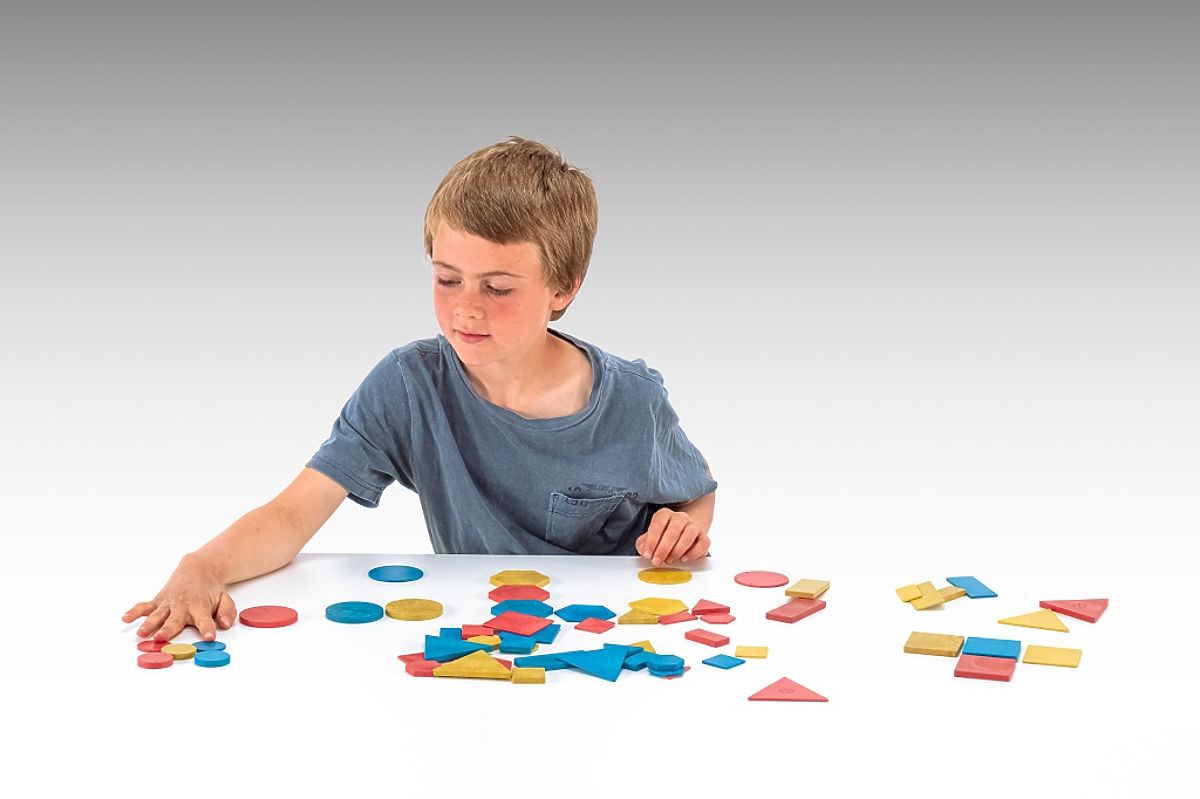 60 kusů dřevěných geometrických tvarů vyrobených z recyklovaného dřeva, které slouží ke hraní i učení se o tvarech a barvách. 5 různých tvarů (čtverec, trojúhelník, obdélník, kruh, šestiúhelník) ve 2 velikostech (velký čtverec 5,5x5,5 cm, malý čtverec 3,2x3,2 cm) ve 3 barvách (červená, žlutá a modrá) a ve 2 tloušťkách (0,2 cm a 0,6 cm). Naučte se pojmenovat a rozlišovat geometrické tvary. Vytvářejte z těchto logických bloků identické vzory, rozpoznávejte je podle barvy, tvaru, velikosti nebo tloušťky. Vyrobeno ze 100 % recyklovaných materiálů, má certifikaci PEFC a po použití jej lze opakovaně recyklovat. Hlavní vlastnosti: obsahuje 60 dílů5 různých tvarů, 2 velikosti, 3 barvy, 2 tloušťkyprvní hravé zkušenosti s geometriírozpoznávání tvarů a barevtrénink paměťových dovednostívyrobeno v Německu