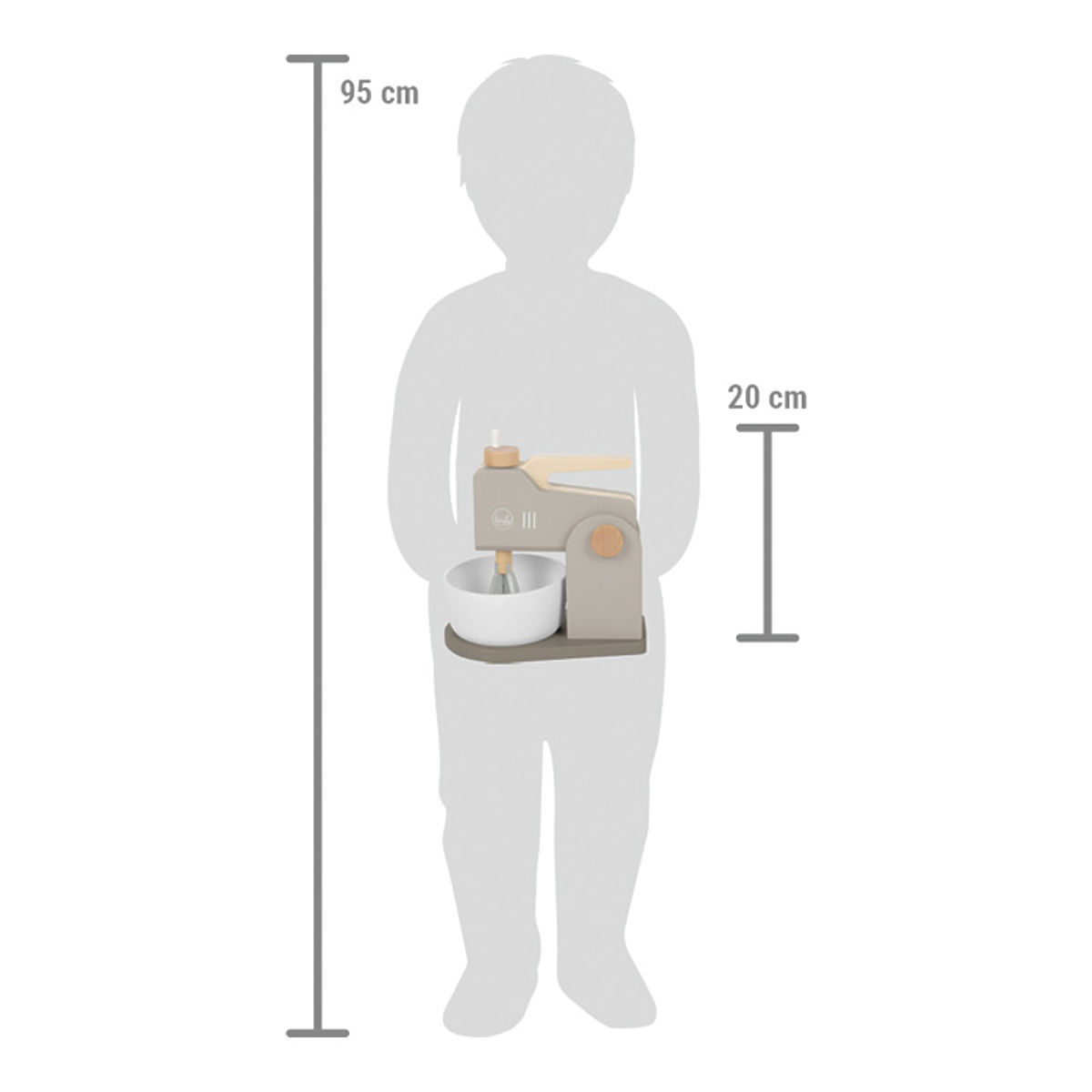 S touto dřevěnou sadou mixéru v teplé šedé barvě s množstvím přírodního dřeva budou malí pekaři i pekařky ve své kuchyňce skvěle vybaveni. 2 v 1! Ruční mixér se dá připevnit k podstavci mixéru a během chvíle se tak promění v moderní kuchyňský robot. Metlička ještě umocňuje realistický herní zážitek, neboť jí lze otáčet pomocí rukojetí. Samozřejmě nechybí ani dřevěná mísa, ve které je třeba namixovat to správné těsto. Sklápěcí mixovací hlava, která se dá odklopit nahoru, umožňuje snadné vyjmutí mísy. Mixér má stabilní základnu díky podstavci. Hlavní vlastnosti: 2 v 1ideální doplněk dětských kuchyněkstabilní provedenírozvoj sociálních dovednostívyvážený design a moderní barvyhodí se k dalším výrobkům z produktové řady Tasty