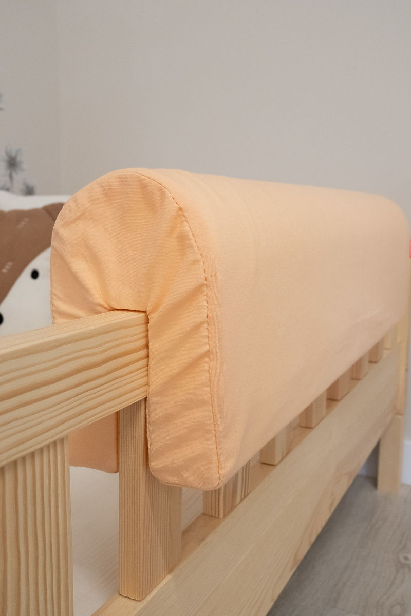 Měkký, bezpečný a krásný. Takový je broskvový chránič na postel Ourbaby, který je skvělým doplňkem do každého dětského pokojíčku. Chránič je vyroben z vysoce kvalitní polyuretanové pěny a potah z měkké a příjemné látky Jersey. Je k dispozici ve třech velikostech a tak se dokonale přizpůsobí posteli v každém rozměru.