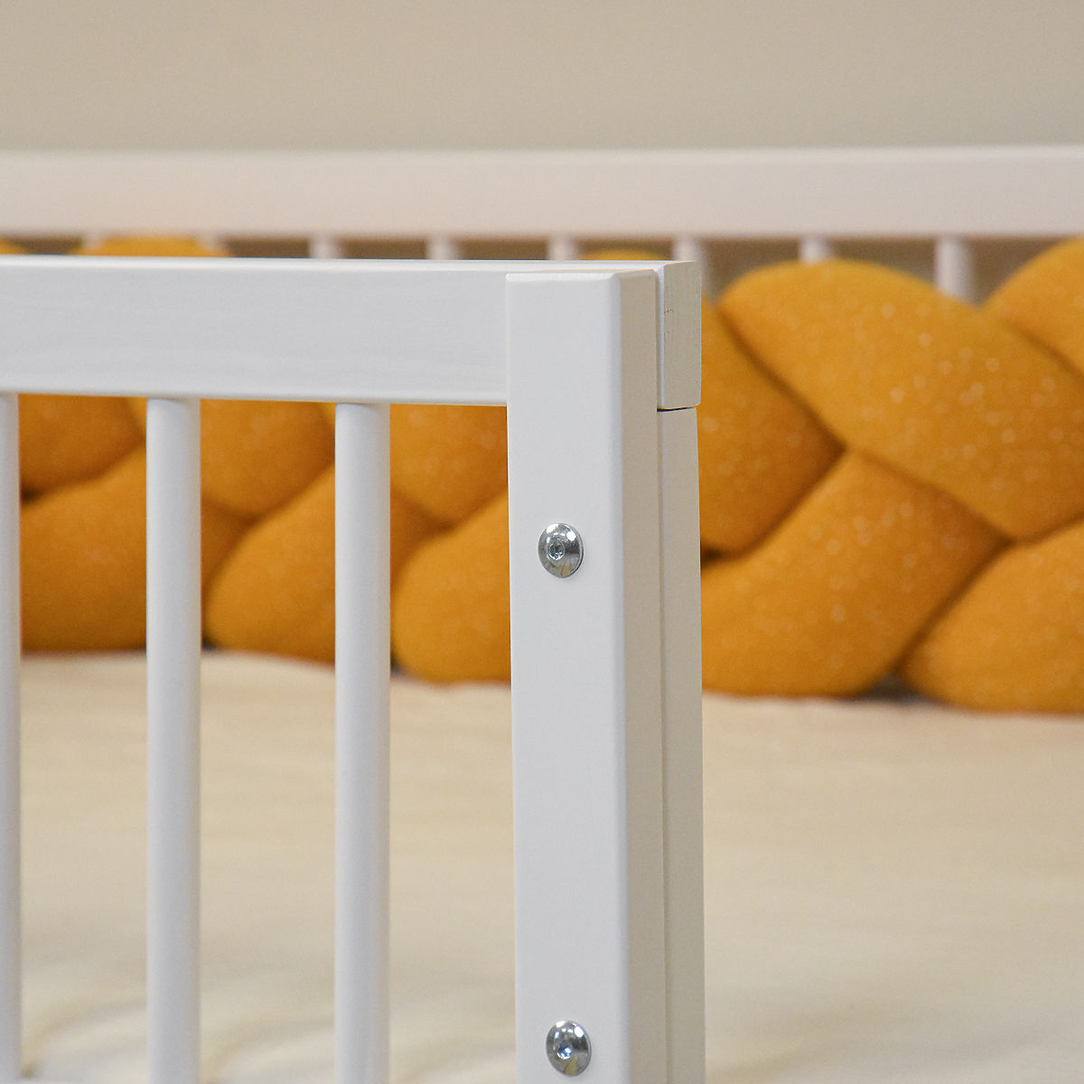 Postel je vyrobena z kvalitního masivního dřeva a lakována ekologickou certifikovanou barvou, která je schválená pro použití u nábytku. Její minimalistický design se skvěle hodí do moderního dětského pokoje, zatímco odnímatelná bočnice zajišťuje ochranu během spánku.