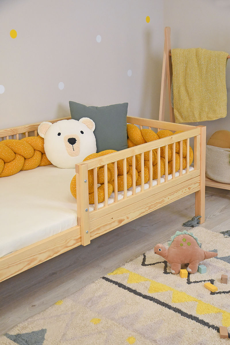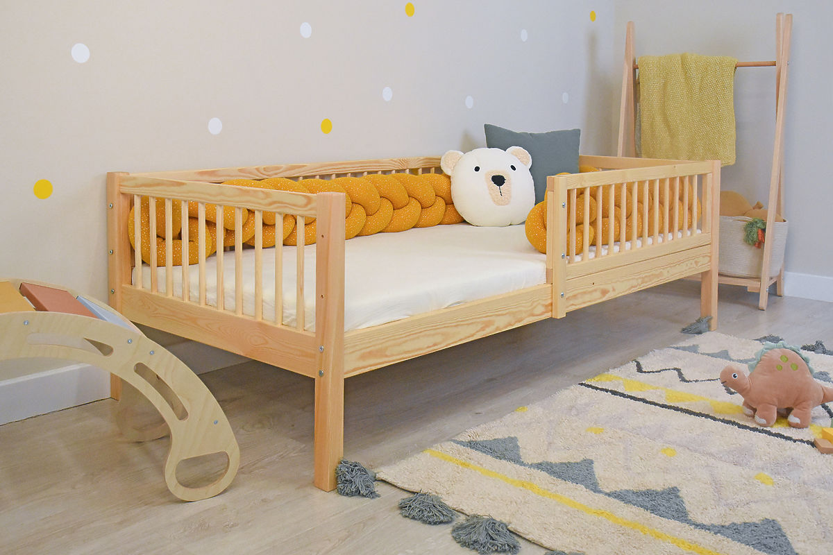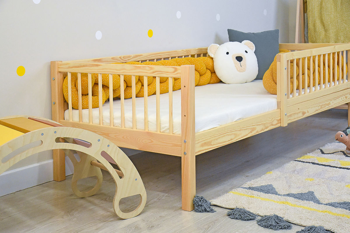Kvalitní dětská postel Teddy Plus v přírodní barvě je ideální volbou pro každý dětský pokoj. Je vyrobena z masivního borovicového dřeva, které zajišťuje pevnost, stabilitu a dlouhou životnost. Přírodní povrch je lakován bezbarvým lakem s certifikáty. Díky promyšlenému designu poskytuje postel nejen pohodlný spánek, ale i bezpečí a praktický úložný prostor pod postelí.