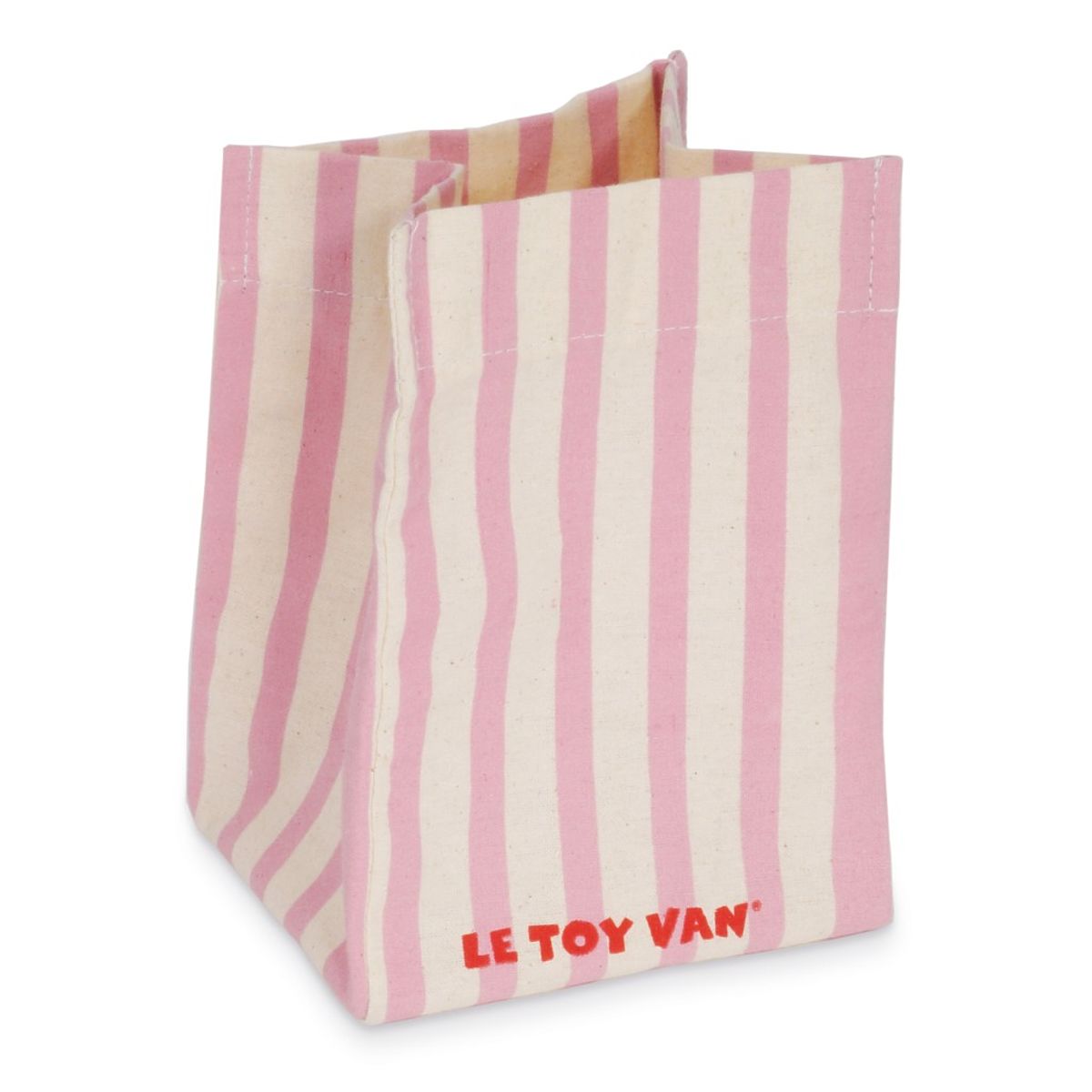 Tato hračka některým z vás přinese notnou dávku nostalgie. Pruhovaný retro pytlík se sladkostmi, to je mnoho sladké zábavy, bez bolesti zubů. Každá sladkost má unikátní ilustraci, na některých dokonce najdete zlatavé detaily. Tato hračka je vyrobena eticky z udržitelného kaučukového dřeva a je 100% bez obsahu plastu! Dřevěné sladkosti děti uvedou do magického světa představivosti. Hračky s účelemVšechny hračky firmy Le Toy Van jsou vyrobeny s cílem – aby dlouho vydržely. Designovány s láskou zkušenými řemeslníky za použití etických praktik a udržitelných materiálů, které jsou laskavější k naší planetě. Hlavní vlastnosti: vyrobeno eticky z udržitelného dřevatestováno dle nejpřísnějších standardůmalováno netoxickými barvami na bázi vodyinspiruje ke kreativní a představivé hřepomáhá s rozvojem řeči a sociálních dovednostípodporuje při raném vývoji Honeybake kolekce: Hračky v této kolekci jsou vhodné k objevování, pomohou dětem s rozvojem představivosti, sociálních a verbálních dovedností a kognitivních funkcí. Tradiční design s moderními detaily děti jistě bude bavit. Honeybake je kolekce Le Toy Van, která vyhrála nejvíce ocenění, a to za design, kvalitu, bezpečnost a také za vzdělávací a herní hodnotu.