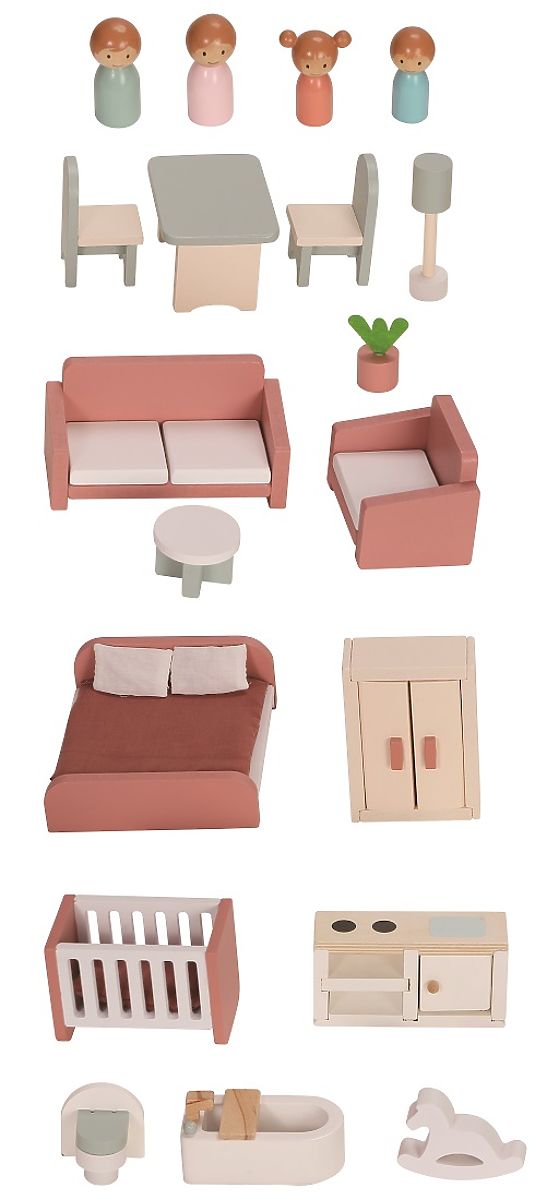 Babynabytek.cz » Hračky / Domečky pro panenky / Dřevěné domečky pro panenky / 2Kids Toys Domeček s panenkami růžový