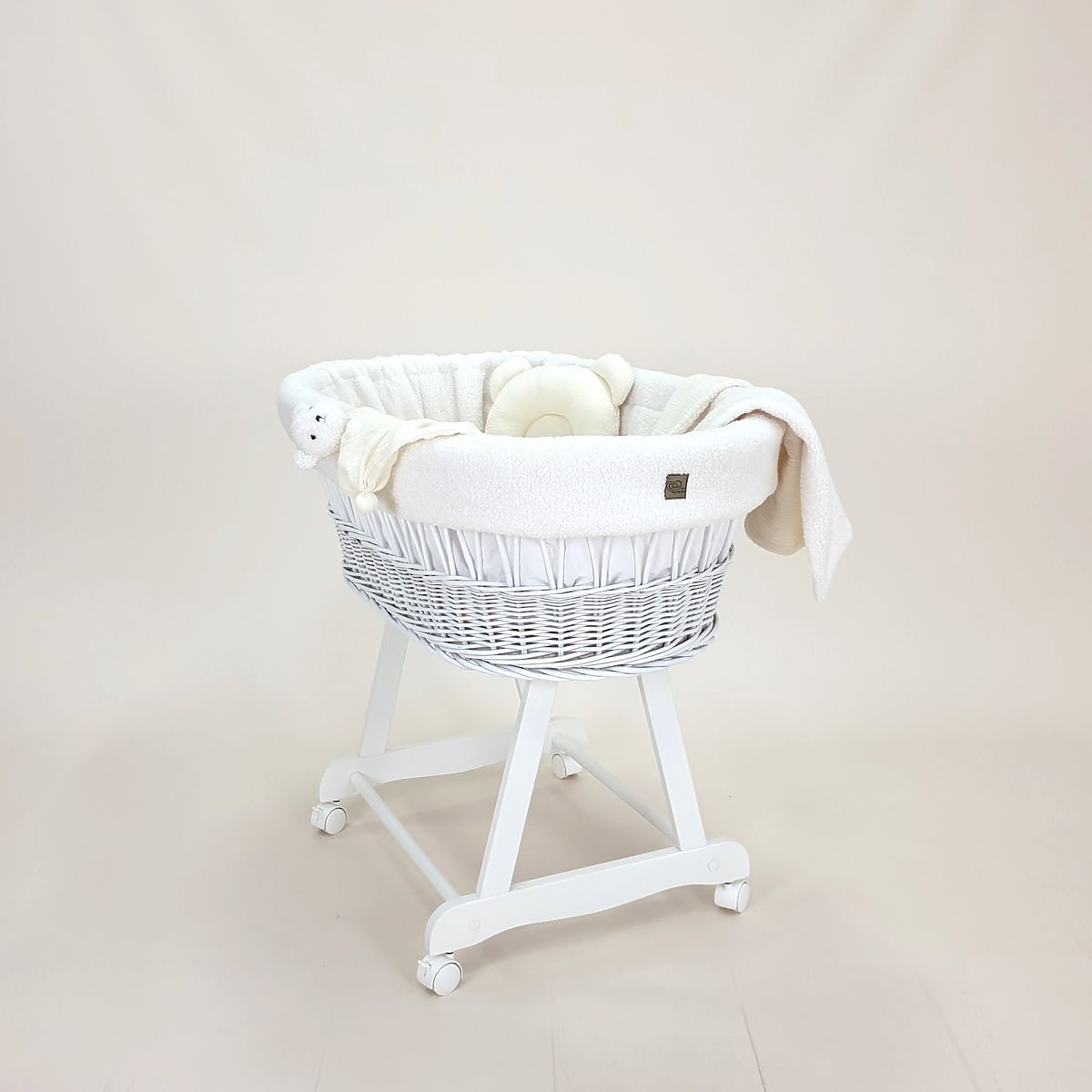 Babynabytek.cz » Dětský nábytek / Postýlky / Proutěné postýlky / Bílá proutěná Teddy postýlka pro miminko - výbava v barvě ecru