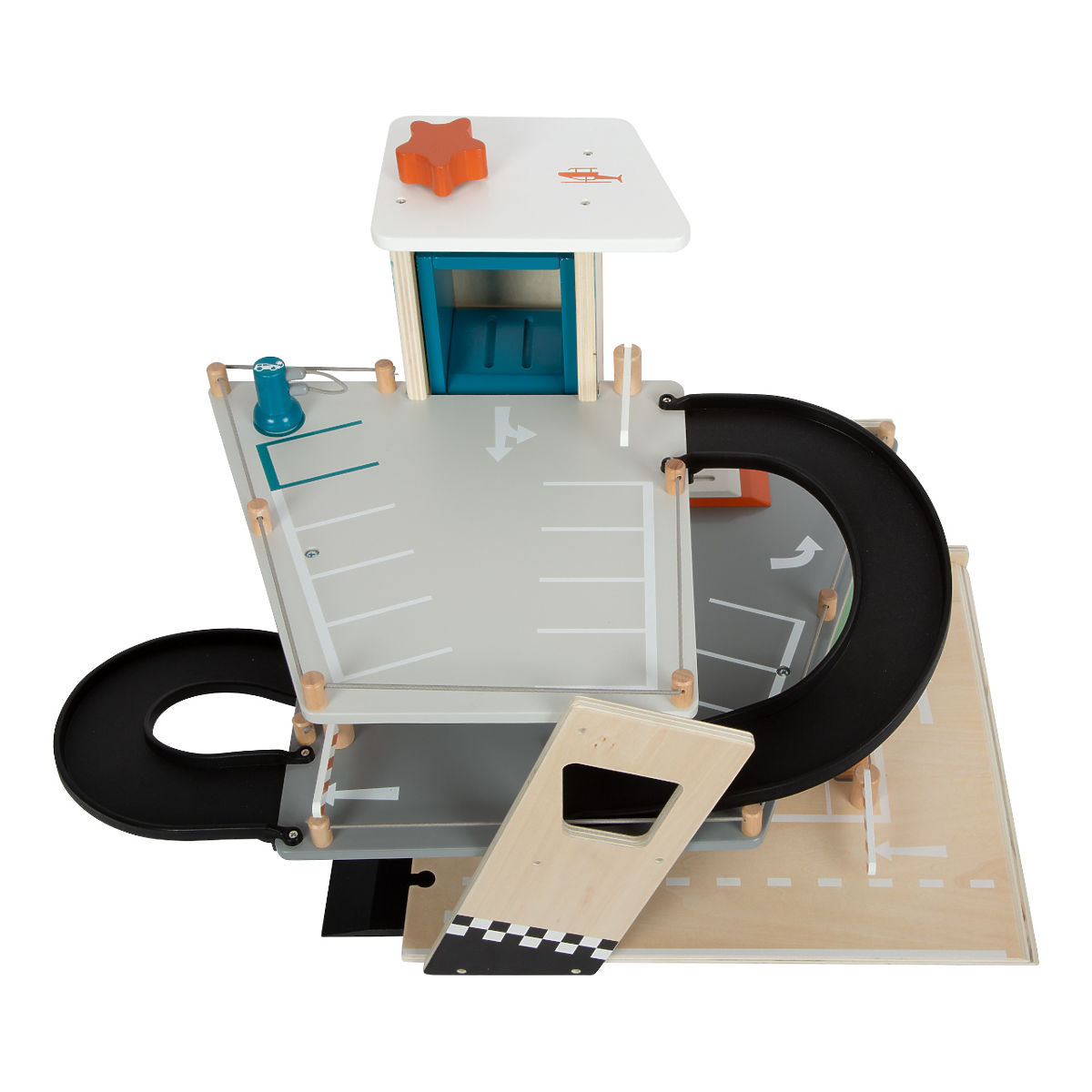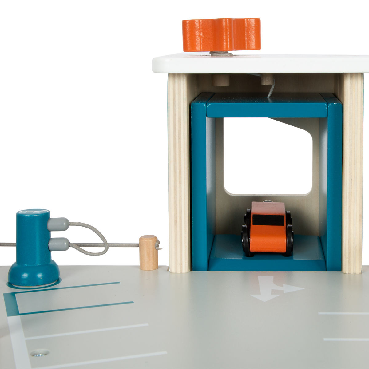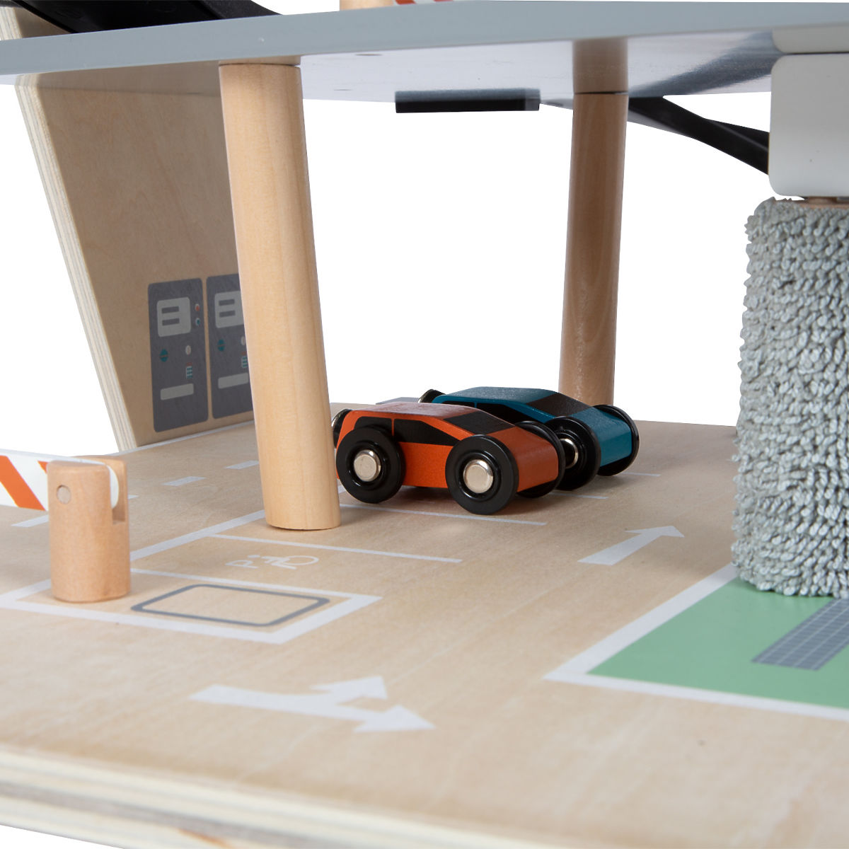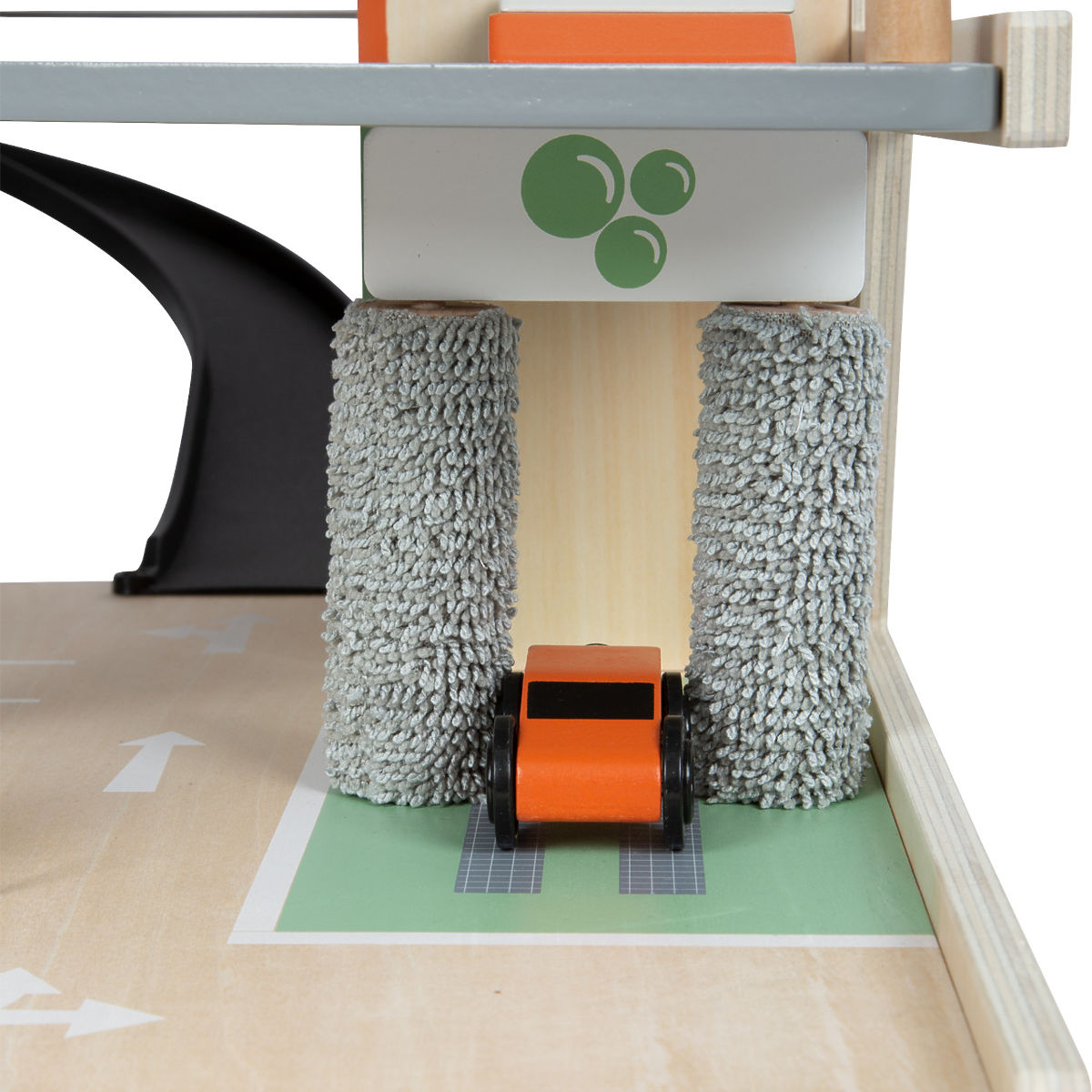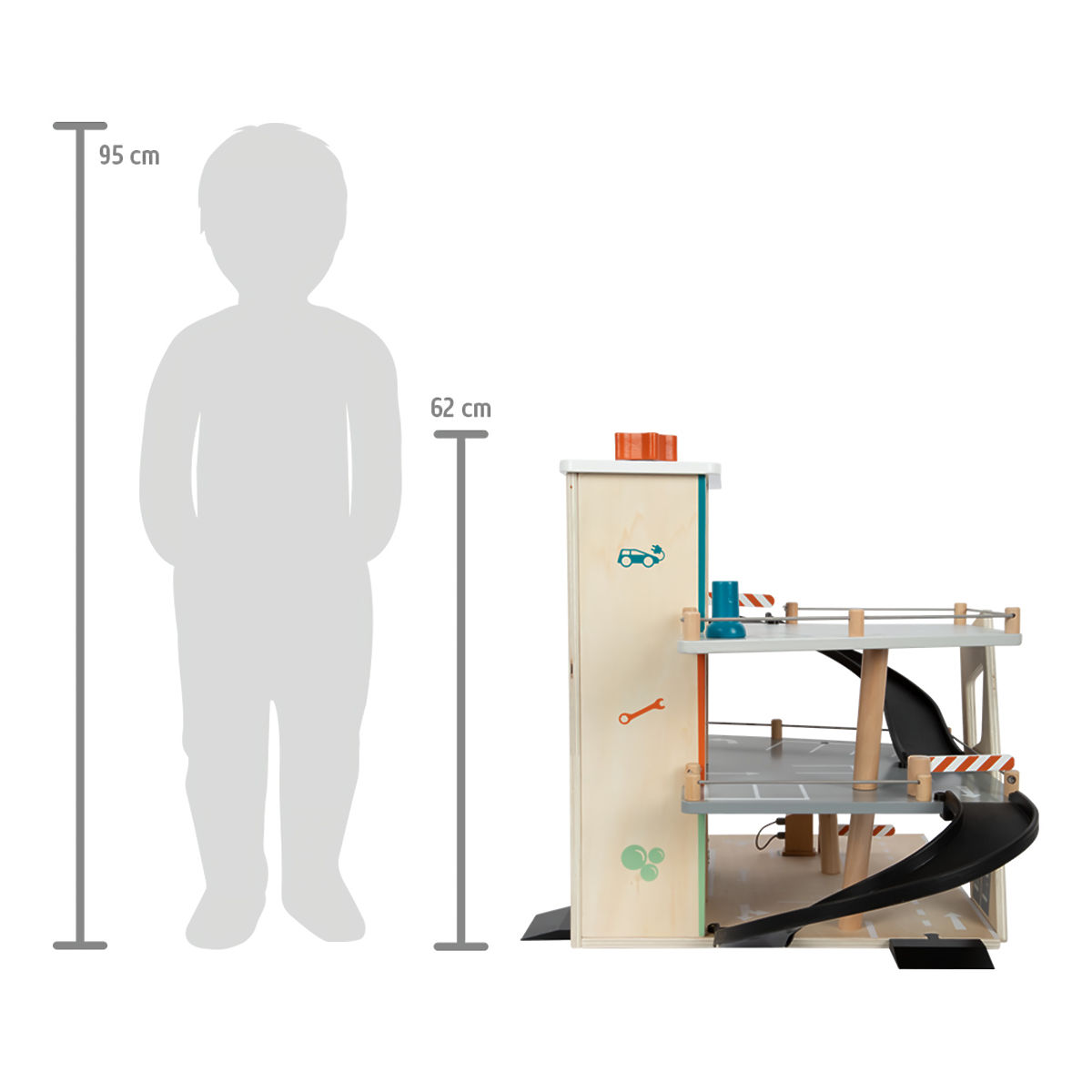 Video je pouze ilustrační, zobrazuje příbuzný produkt. Parkujte, tankujte, myjte nebo opravujte, a to vše s jednou garáží! Nabízí tři bohatě vybavená podlaží propojená atraktivním funkčním výtahem a zábavnými, na sebe plynule navazujícími rampami. Její součástí je dvojice autíček, která mohou při fantastických hrách využít pumpy, nabíjecí stanice, zvedací rampy, nebo myčky s realistickými kartáči. Každá z úrovní je navíc opatřena mechanickou závorou pro dokonale poutavé zážitky. Patra jsou opatřena gumovým hrazením, které dodávají jízdě autíček na dynamice a brání jejich vypadnutí. Garáž je podrobně zdobena mnoha barevnými ikonami a značením, které do her vnese i poučení. Je vyrobena ze silné, pevné a odolné dřevěné překližky s doplňky z masivního dřeva a nezávadného plastu. Výrobek vyžaduje montáž, dodáváno s obrázkovým návodem k sestavení. Hlavní vlastnosti:garáž a 2 autíčka3 podlaží propojená funkčním výtahem a 2 rampamipumpa, nabíjecí stanice, zvedací rampa, myčka a 3 závorykompatibilní s vláčkodráhami a souvisejícím příslušenstvím jiných výrobcůbohatě zdobeno jednoduchými ikonami a značenímpevné a odolné dřevěné provedení