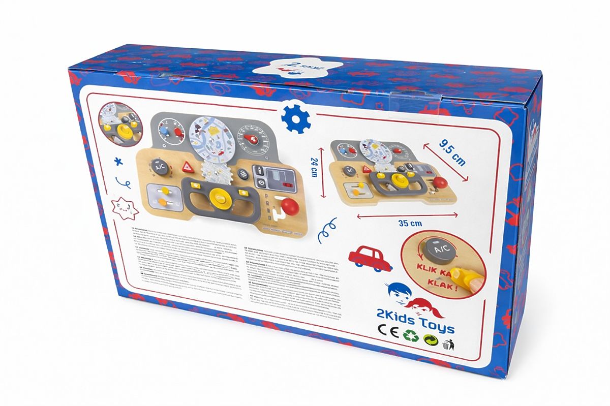 Mami, tati, dneska řídím já! Tato hrací deska přináší spoustu zábavy, díky které bude moci Vaše dítě rozvíjet svou zručnost, zvídavost a zejména jemnou motoriku. Interaktivní prvky jako jsou tlačítka či otočná kolečka dávají dítěti možnost procvičovat různé posouvání, otáčení či cvakání a připravit se tak na každodenní úkony. Mimo aktivit zapojující smyslové dovednosti deska disponuje volantem - skvělá možnost jak posunout představivou hru ještě dál. A navíc si mohou i zatroubit na cestu. Jízda to bude daleká! Hlavní vlastnosti: podporuje nezávislost, jemnou motoriku a koordinaci ruka-okopodněcuje kreativní myšlení a vývoj představivostisenzorická stimulaceedukace skrze hrustylový design, který nadchne kluky i holkyvydává troubivý zvuk