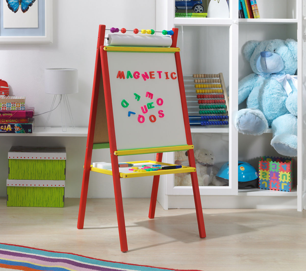 Chcete jednoduchou a přesto veselou tabuli do dětského pokoje? Hravá tabule s červenou konstrukcí je tou pravou volbou. Navíc vlastní certifikát CE.