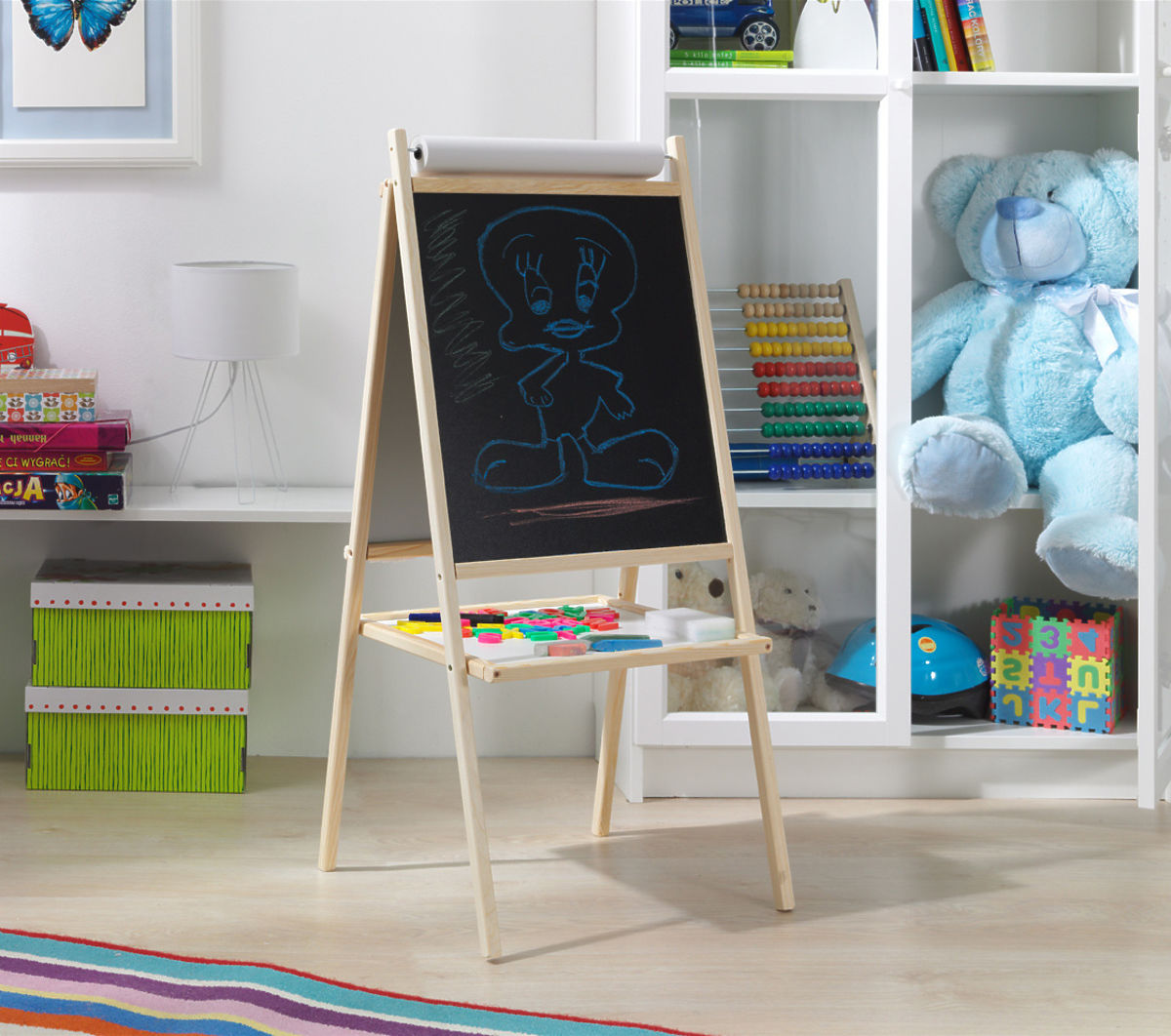 Tabule s přírodním rámováním, vyrobená z kvalitních materiálů, se hodí do každého dětského pokoje. Nejedná se jen o dokonalou dětskou hračku, ale i o skvělou pomůcku při výuce a rozvoji dítěte. Používáním tabule můžete rozvíjet nejen psaní či počítání, ale také kreativní myšlení. Přírodní dětská tabule je oboustranná. Z jedné strany nabízí povrch školních tabulí, na který lze kreslit křídou, z druhé strany je magnetická.
