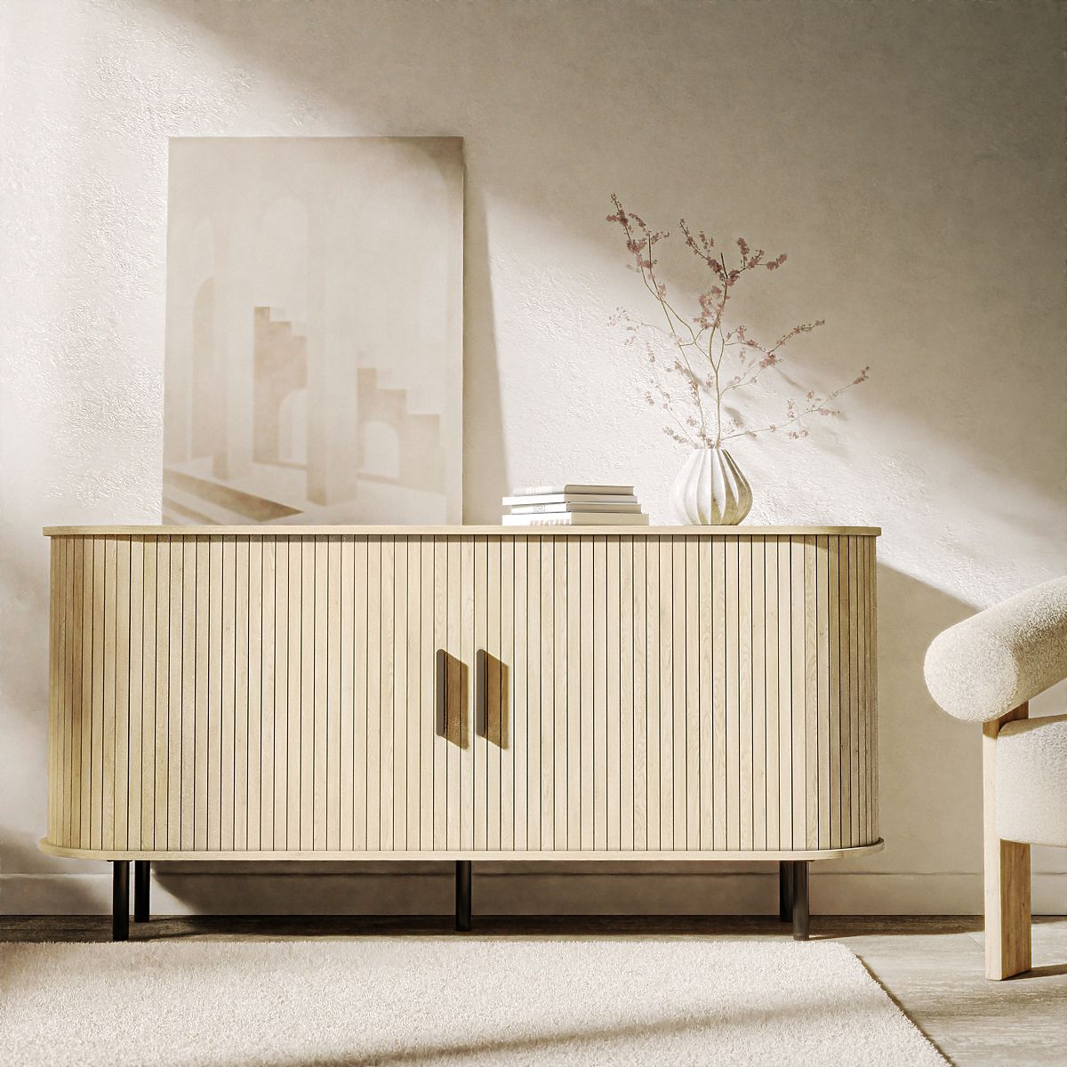 Designová komoda Gliss se zaobleným tvarem a světlým dubem. .. více