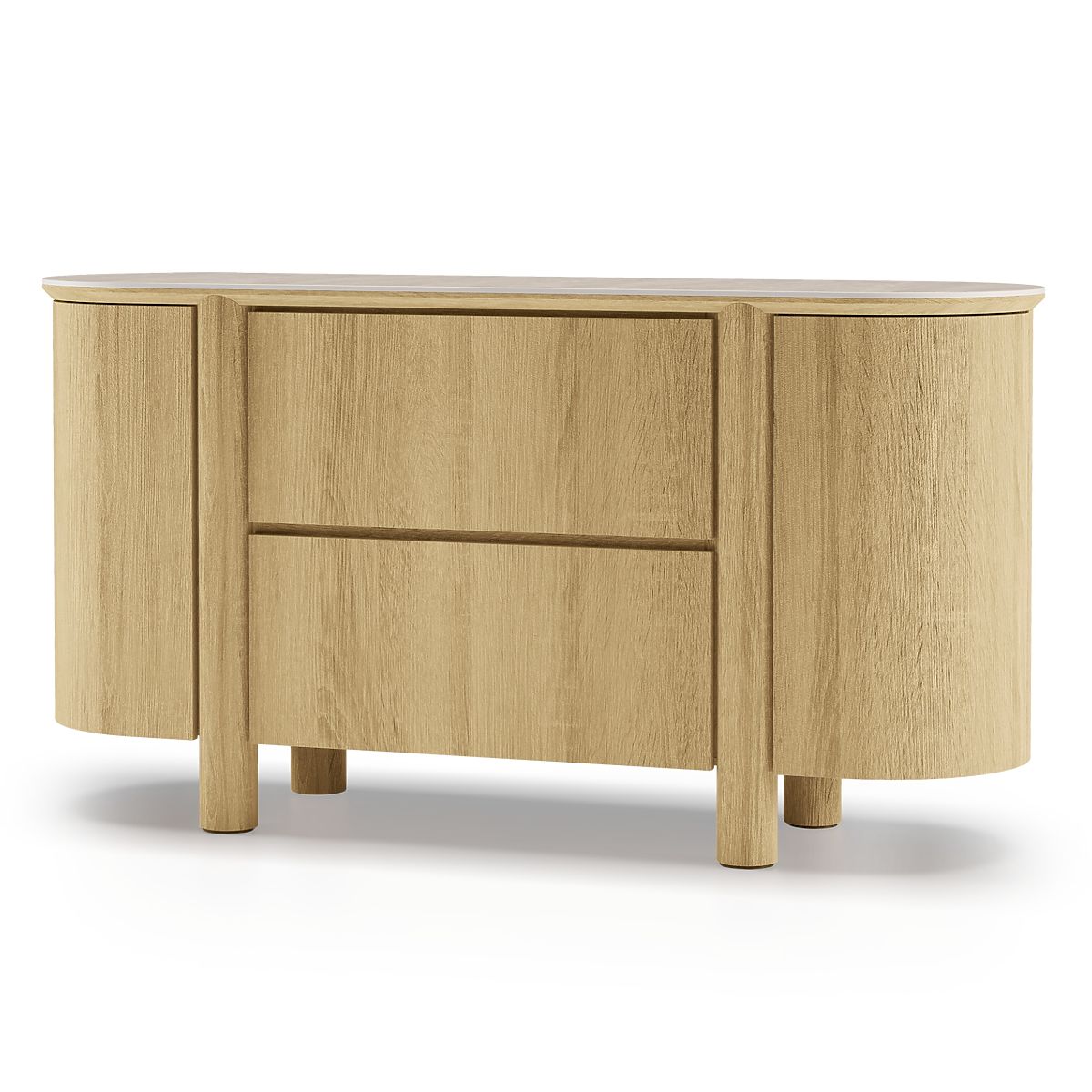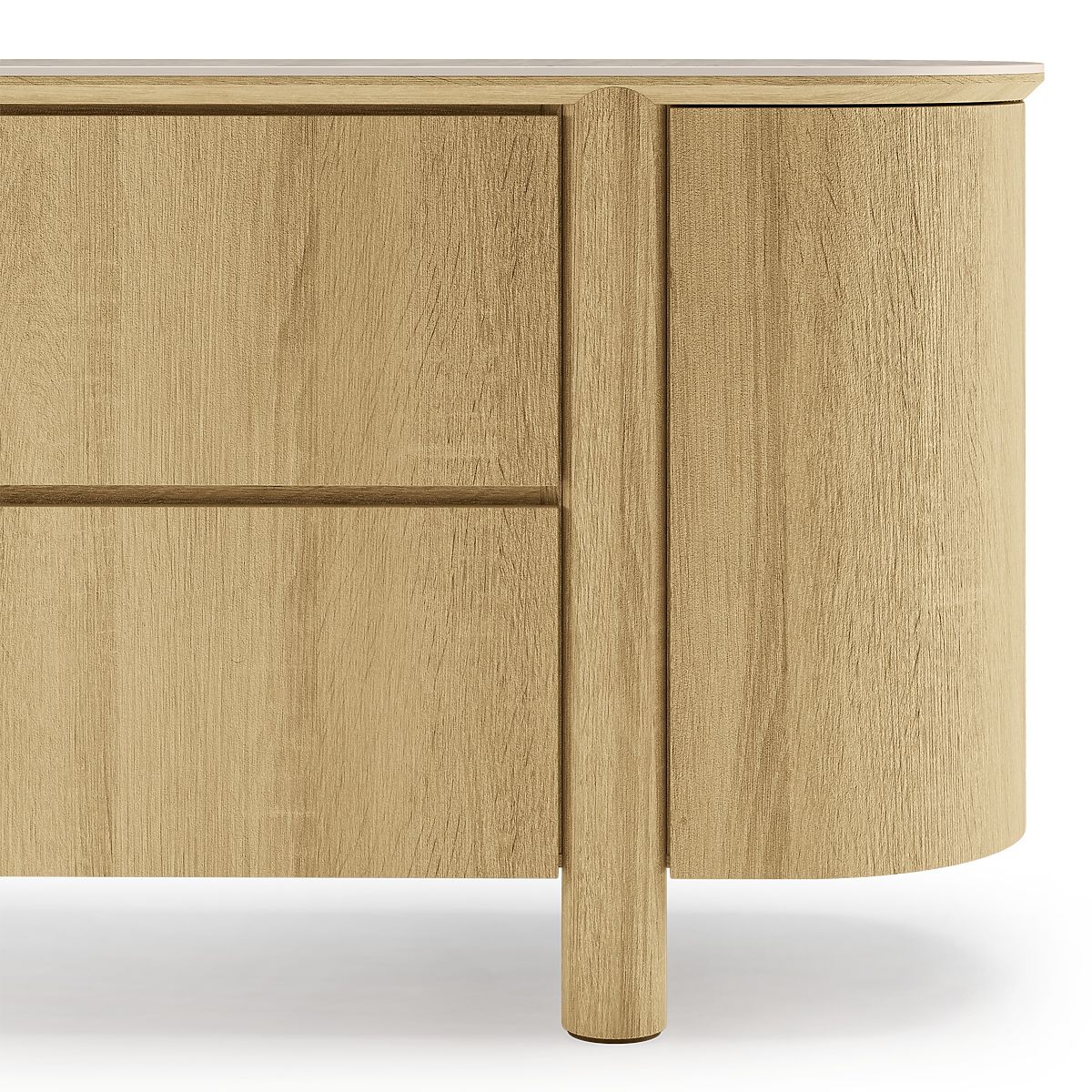 Zaoblená komoda Segretto z přírodního dubu s travertinovou deskou. .. více