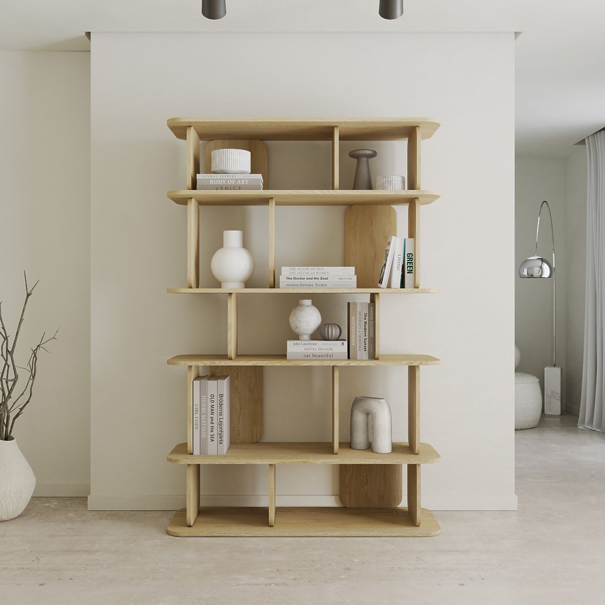 Babynabytek.cz » Knihovny, regály a police / Regály / Vysoký regál Tulumo, zaoblený, Dub Cremona Torro