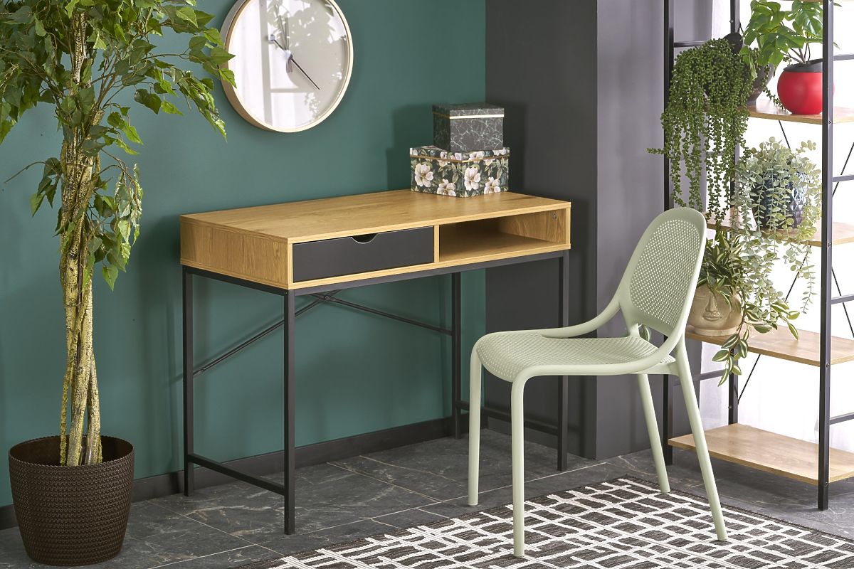 Psací stůl z nábytkové desky a oceli v přírodní a černé barvě. .. více