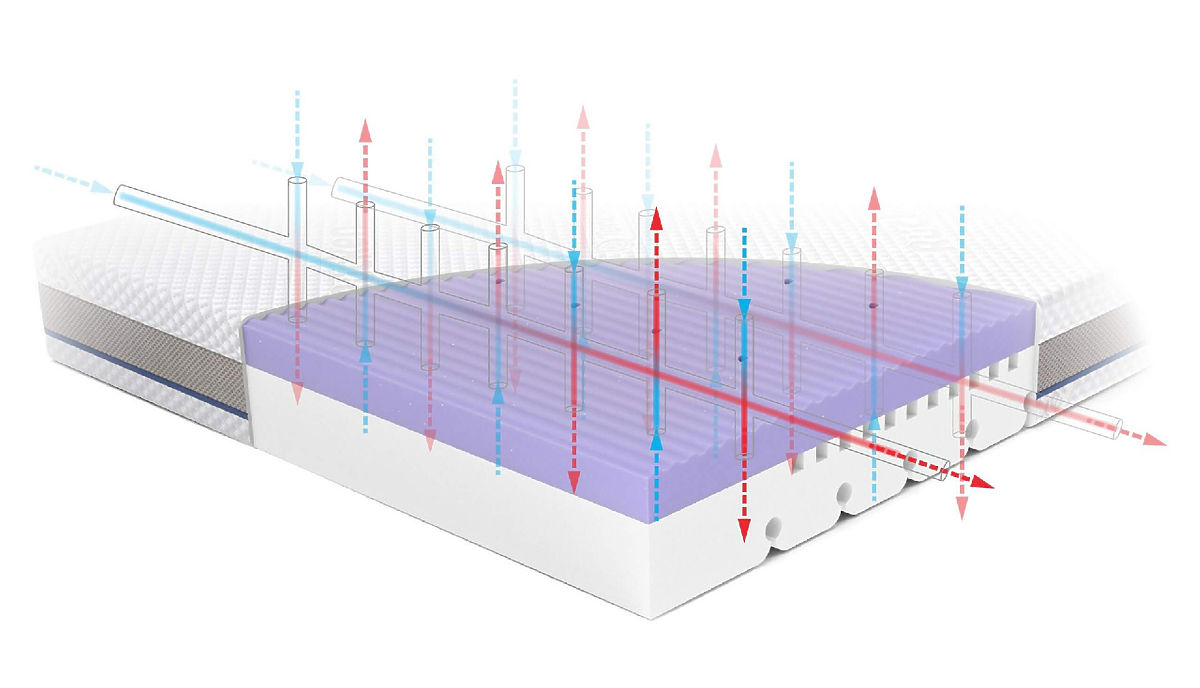 Potahová síť a vertikální a horizontální kanály jsou plně integrovány - díky tomu vzniká rozšířená síť a matrace dýchá.