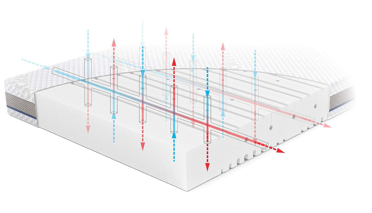 Potahová síťka a vertikální a horizontální kanály jsou plně integrovány - díky tomu vzniká rozšířená síť a matrace dýchá.