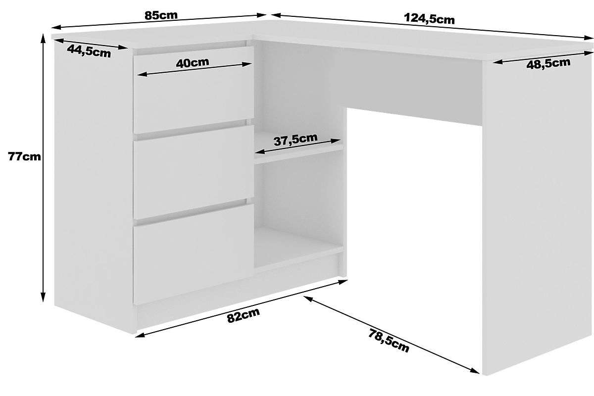 Babynabytek.cz » Dětský nábytek / Stoly a židle / Psací stoly / ROHOVÝ PSACÍ STŮL B16 124 cm LEVÝ 3 ZÁSUVKY PK BÍLÁ / SONOMA