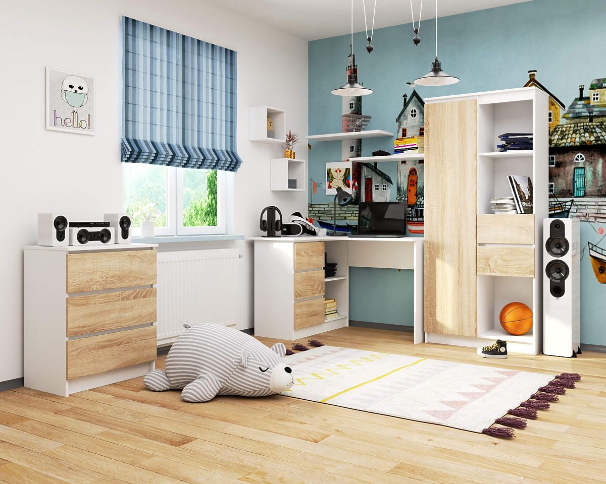 Jak vybrat stůl do pokoje pro mládež? Především podle funkčnosti. Pokoj teenagera musí plnit mnoho různorodých funkcí, poskytovat místo jak pro učení, tak pro zábavu. Rohový počítačový stůl, který máme tu čest představit, je moderní návrh vytvořený na míru potřebám mladých lidí. Vyznačuje se pevnou konstrukcí a kvalitní laminovanou deskou použitou při výrobě. Je odolná a odolná proti poškrábání. Snadno čistitelný stůl se také vyznačuje zajímavým vzhledem, který se určitě zalíbí teenagerům. Nabídka je k dispozici za konkurenceschopnou cenu. Prezentovaný produkt se skvěle hodí nejen do pokoje pro mládež, ale také do dětského pokoje nebo domácí kanceláře. Může být použit také v kanceláři, kde zaujme praktickým použitím, velkým prostorem pro individuální uspořádání a univerzálním a nadčasovým designem. Zveme vás k nákupu.