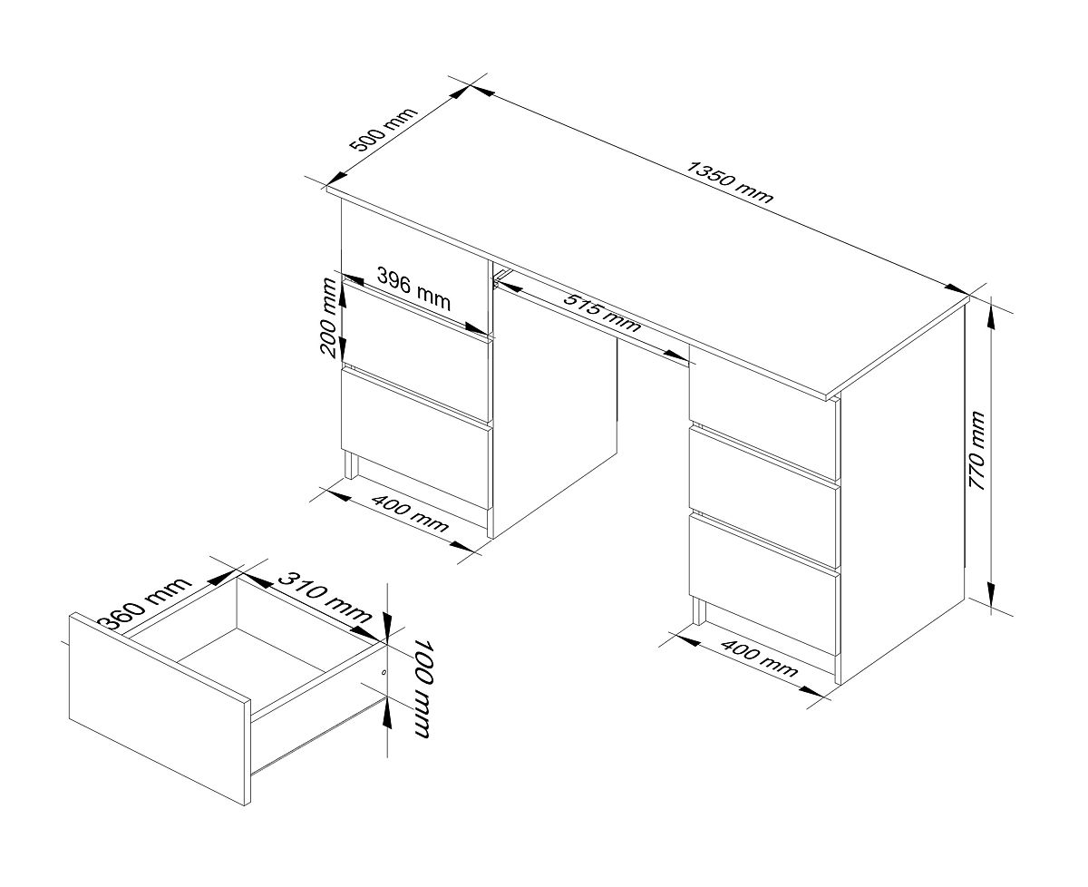 Babynabytek.cz » Dětský nábytek / Stoly a židle / Psací stoly / POČÍTAČOVÝ STŮL A-11 135 cm 6 ZÁSUVKY PK BÍLÁ / ČERNÝ LESK