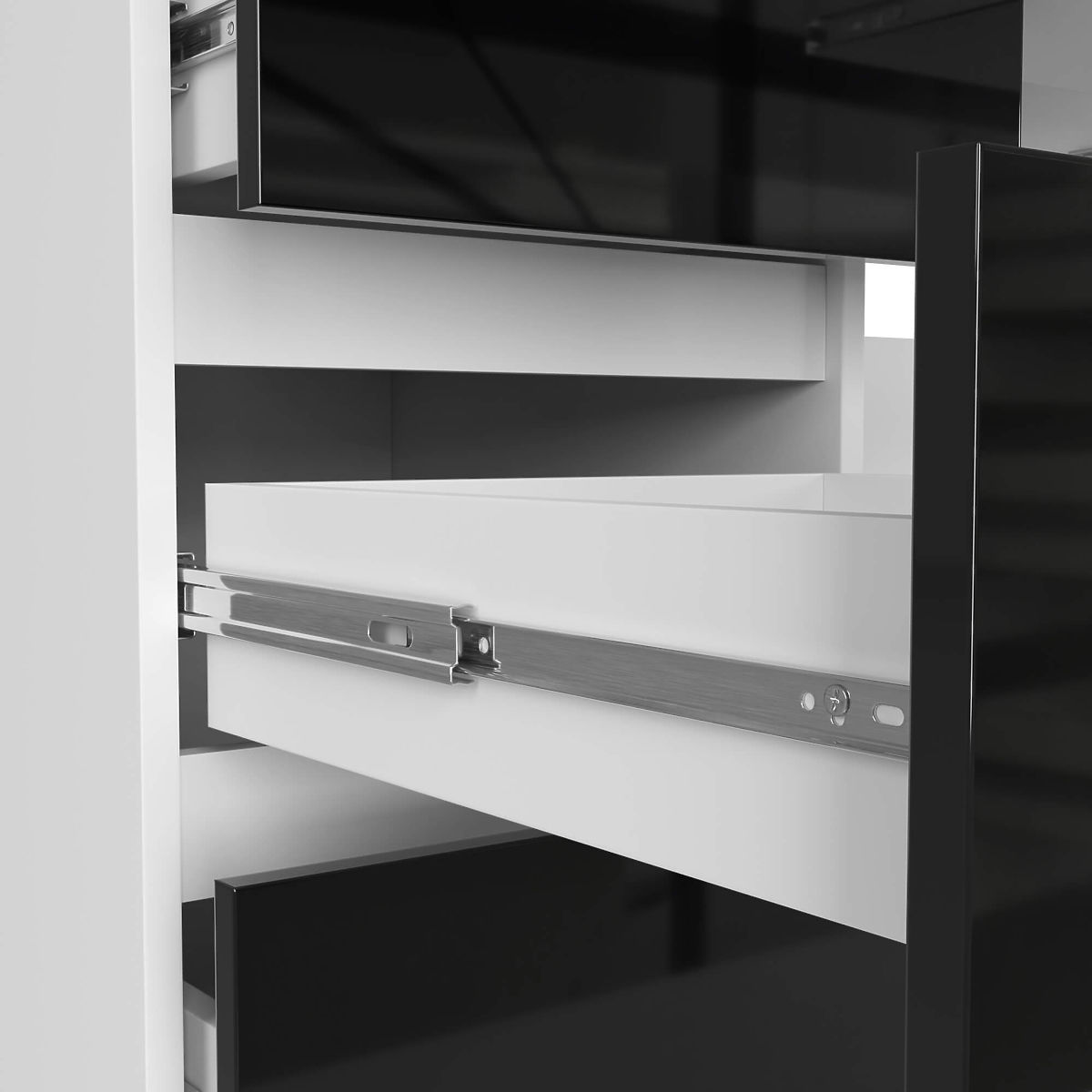 Počítačový stůl s černými lesklými čelními plochami a šesti zásuvkami. .. více