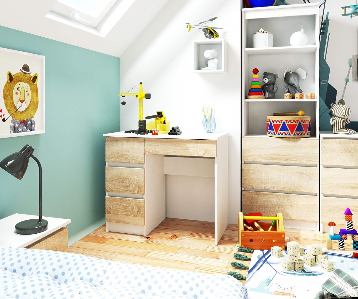 Babynabytek.cz » Dětský nábytek / Stoly a židle / Psací stoly / PSACÍ STŮL A-7 CLP PK BÍLÝ / SONOMA LEVOSTRANNÝ