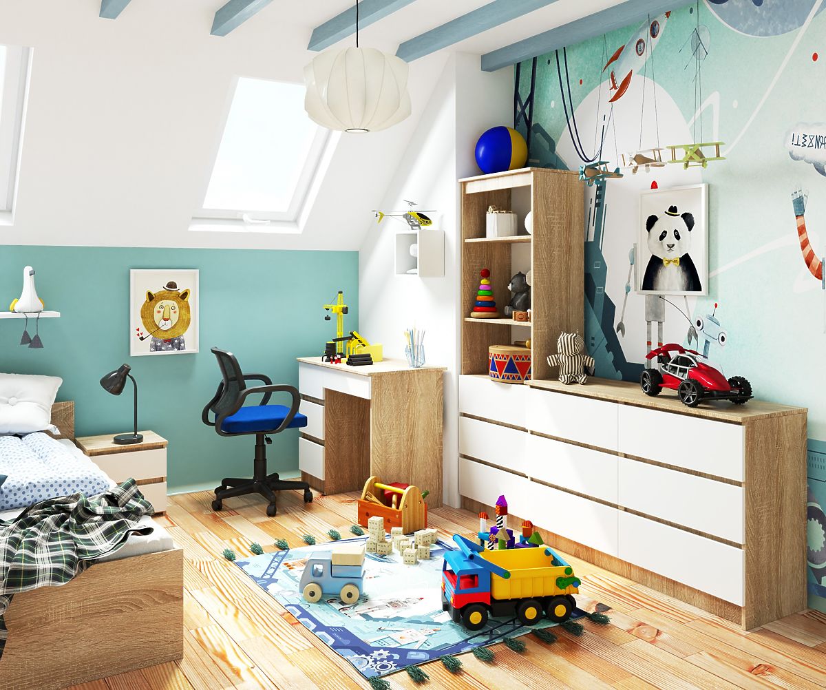 Levostranný počítačový stůl v barvě dub sonoma s bílými čelními plochami a čtyřmi prostornými zásuvkami. Skvěle se hodí do dětského, studentského pokoje, ale i do kanceláře nebo pracovny. Stůl je součástí nábytkového systému CLP, je navržen tak, aby ladil s ostatním nábytkem z této série. Díky tomu můžete vybavit pokoj různým nábytkem, jako jsou regály nebo komody, které budou tvarově i barevně sladěné. Má moderní design, bezúchytkové zásuvky dodávají nábytku minimalistický šarm. Nabízí spoustu úložného prostoru díky čtyřem zásuvkám. Díky klasickému vzhledu má stůl univerzální charakter a nikdy nevyjde z módy. Konstrukce stolu umožňuje pohodlné a ergonomické používání počítače.