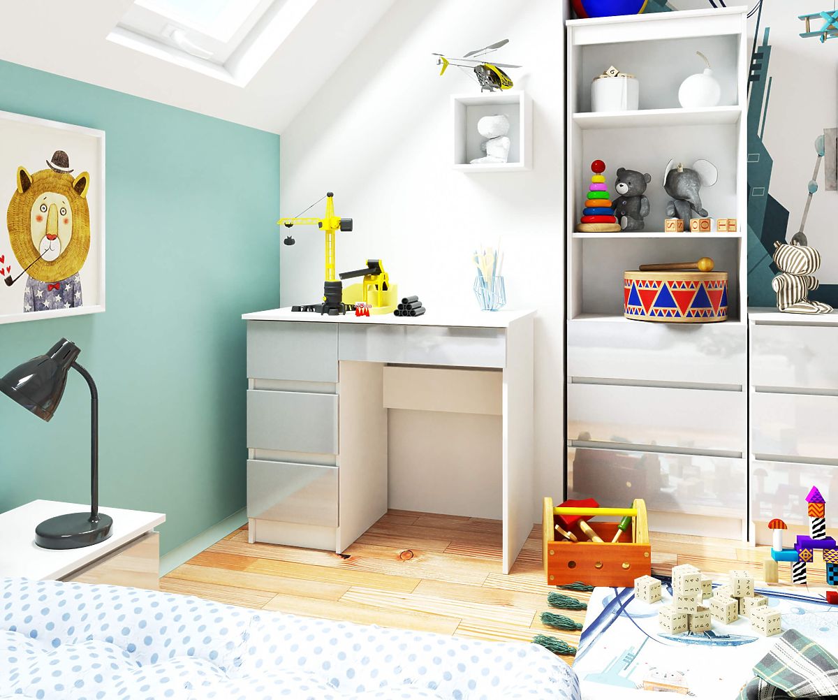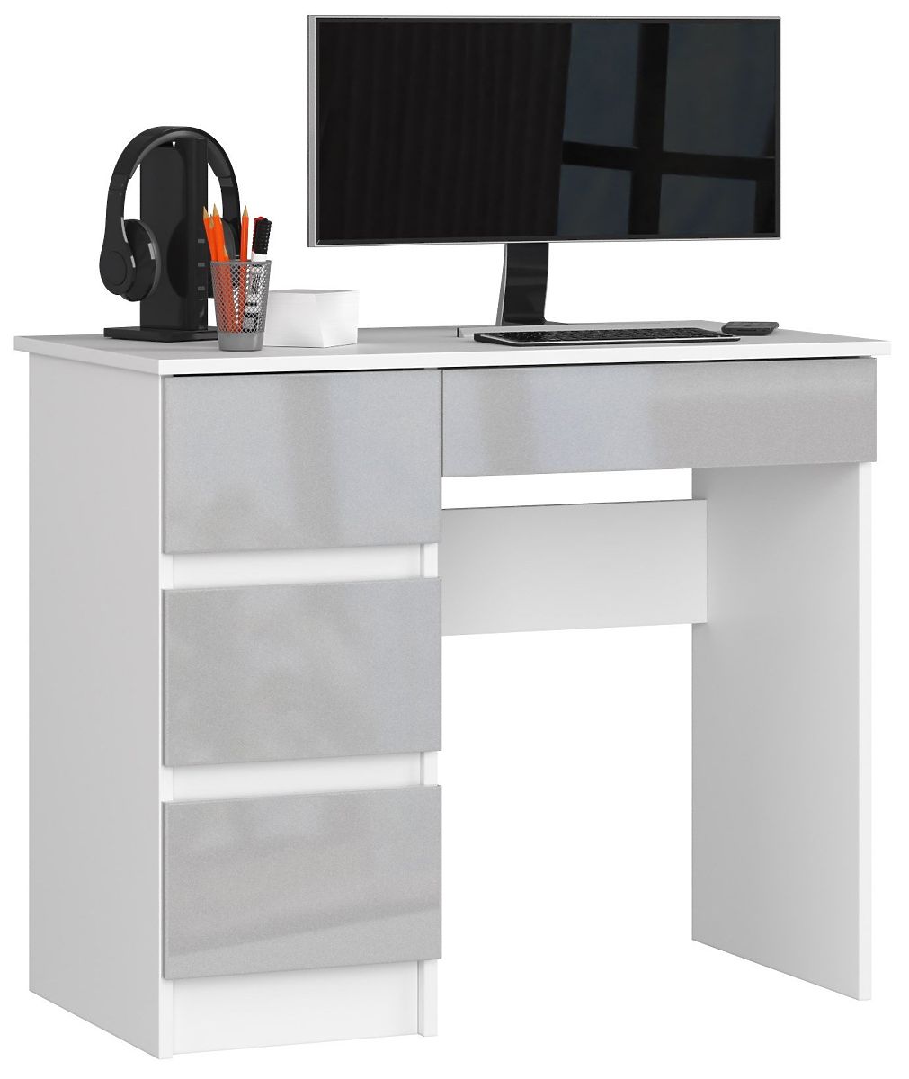 Správně zvolený psací stůl je klíčem k efektivnímu a pohodlnému učení a práci. Pro tyto úkoly se rozhodně hodí počítačový stůl A-7! 3 prostorné zásuvky o hloubce 38,5 cm umístěné na levé straně se skvěle hodí jako úložný prostor na poznámky nebo psací potřeby, zatímco čtvrtá výsuvná pod deskou je ideální pro umístění dalšího vybavení. Kombinace barev bílé a metalické umožňuje, aby počítačový stůl mohl být umístěn jak v kanceláři, tak i v barevném dětském nebo mládežnickém pokoji, kde bude tvořit jemný doplněk interiéru.