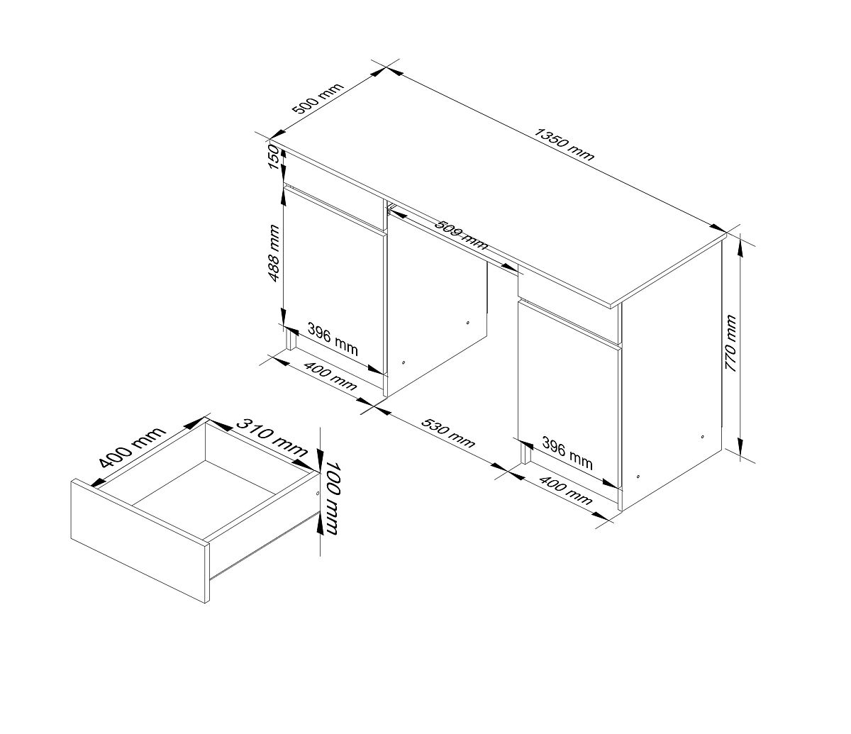 Psací stůl z laminované desky s vysokým leskem a mnoha úložnými prostory. .. více