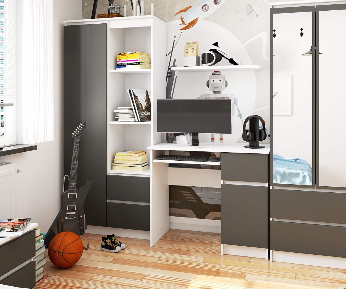 Babynabytek.cz » Dětský nábytek / Stoly a židle / Psací stoly / POČÍTAČOVÝ STŮL PIKSEL PK BÍLÝ / ŠEDÝ - PRAVÝ