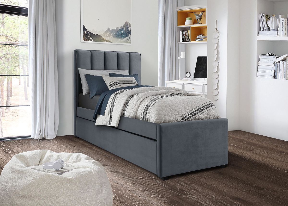 Babynabytek.cz » Dětské postele / S přistýlkou / Postel RUSSO šedá – čalouněná postel s výsuvným druhým lůžkem