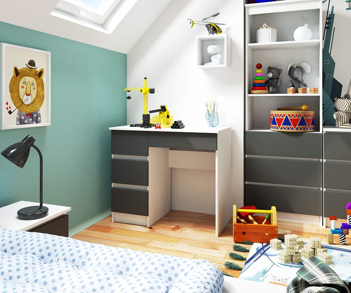 Proč si vybrat právě psací stůl A-7 v bílé a grafitově šedé barvě? Zde jsou jeho výhody:
