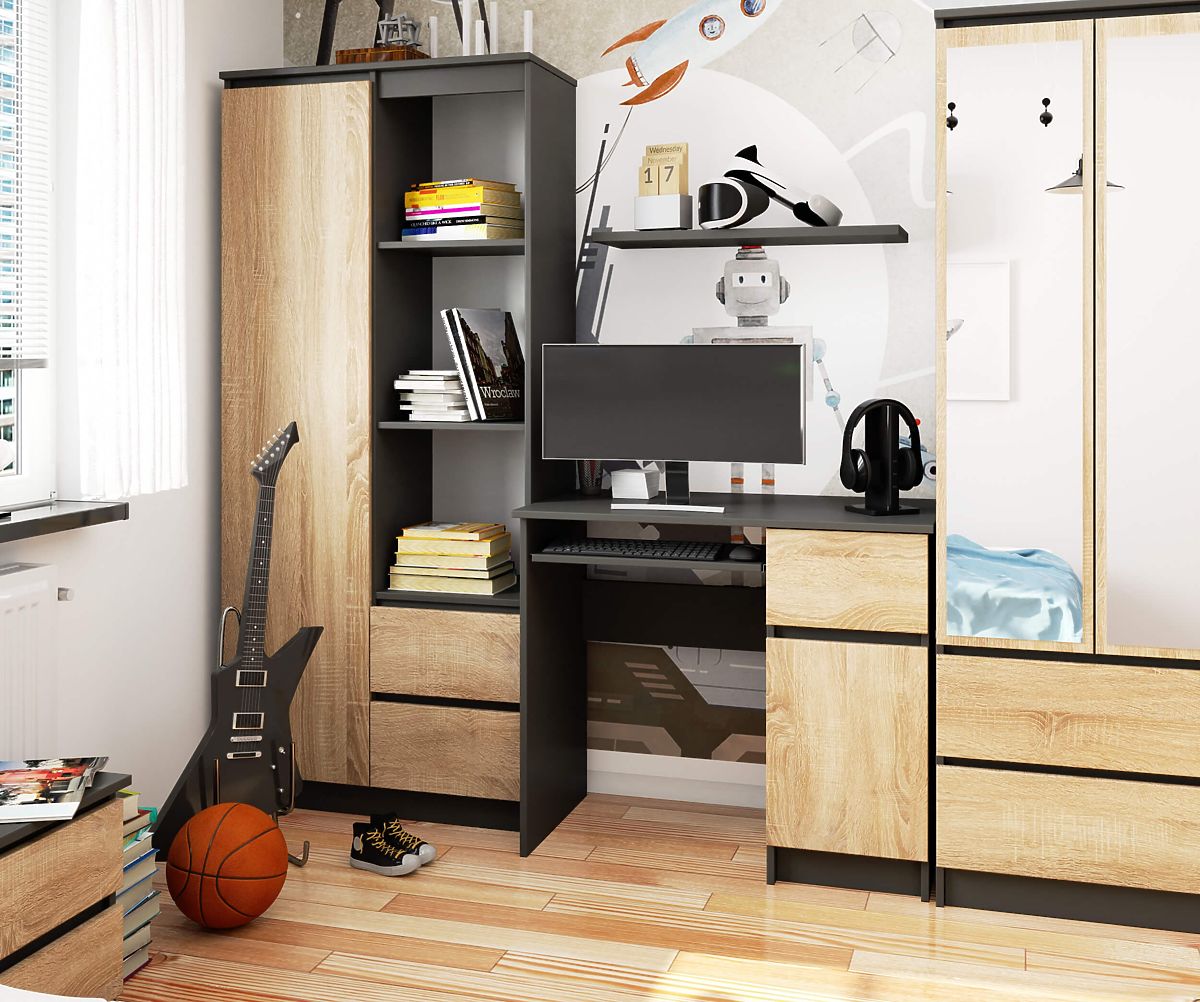 Babynabytek.cz » Dětský nábytek / Stoly a židle / Psací stoly / POČÍTAČOVÝ STŮL PIKSEL PK ŠEDÝ / DUB SONOMA - PRAVÝ