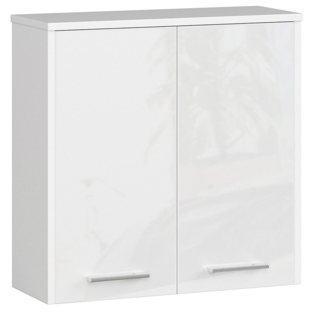 Závěsná skříňka s bílým leskem a dvěma dveřmi pro moderní koupelny. .. více
