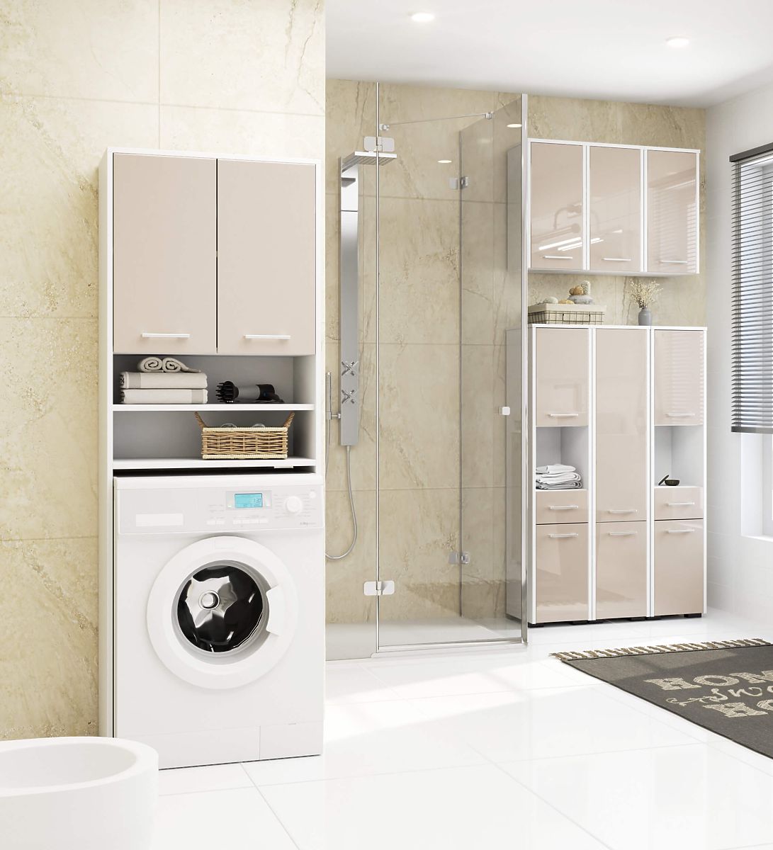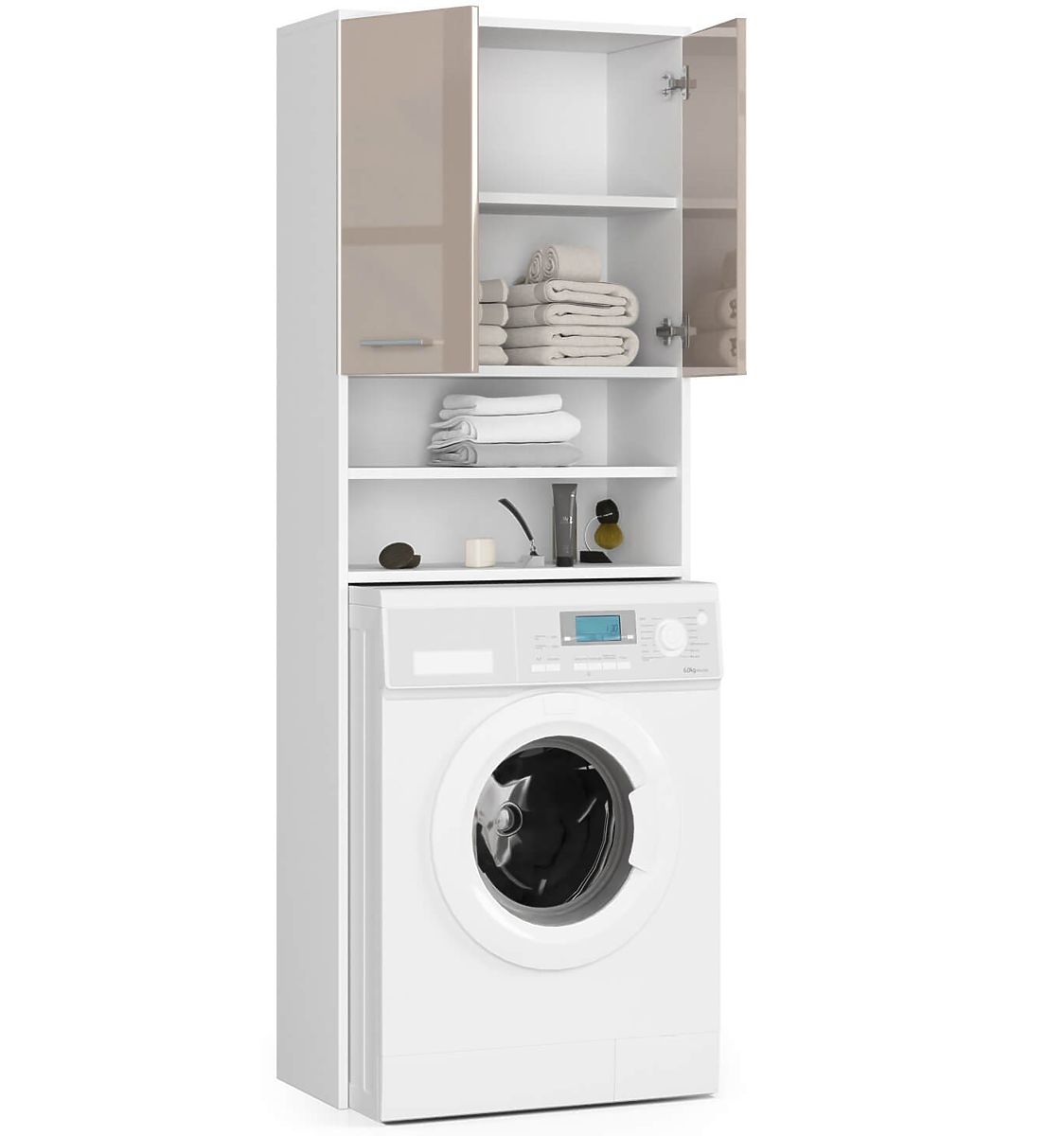 Koupelnová skříňka nad pračku s lesklými cappuccino čely. .. více
