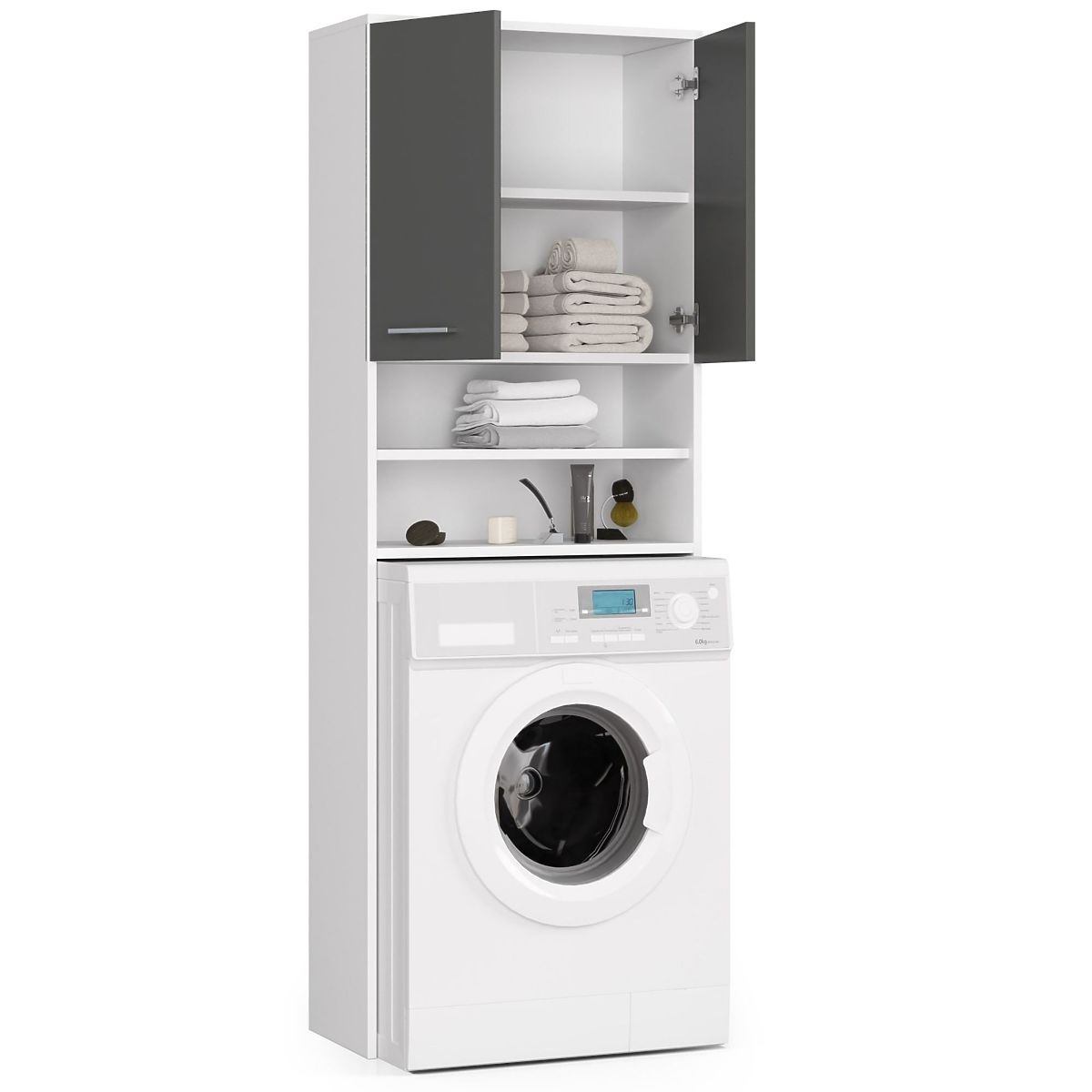Koupelnová skříňka FIN nad pračku s bílým korpusem a grafitově šedými čely. .. více
