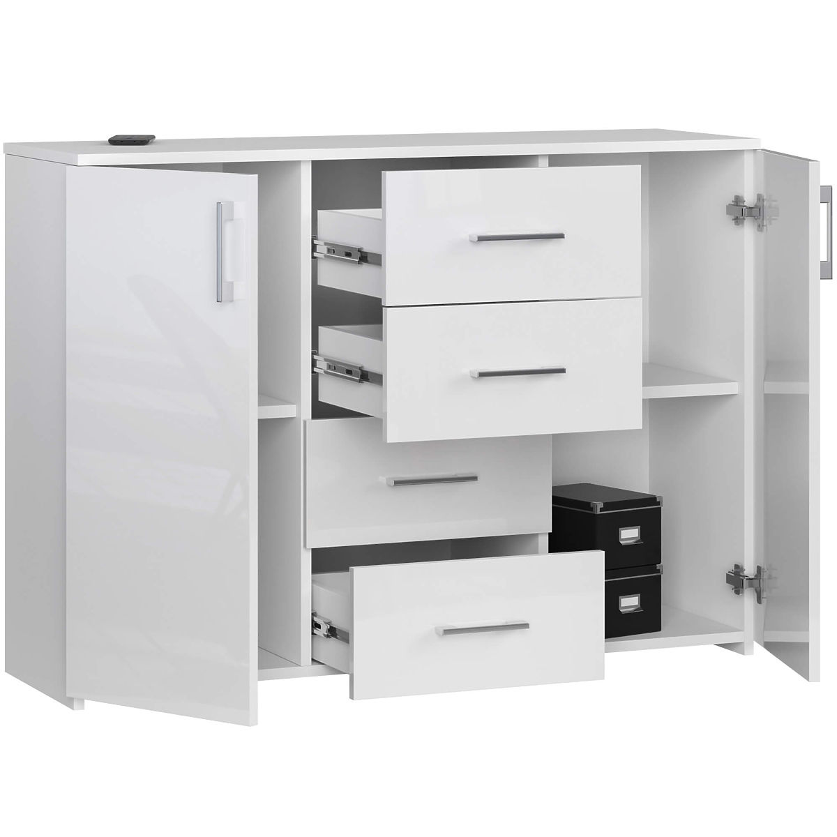 Komoda K45 s bílým leskem a 4 zásuvkami. .. více