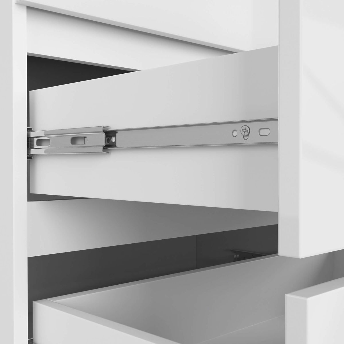 - Zásuvky se pohybují na kovových kuličkových pojezdech - Hrany olepené ABS hranou zajišťující vysokou ochranu proti poškození