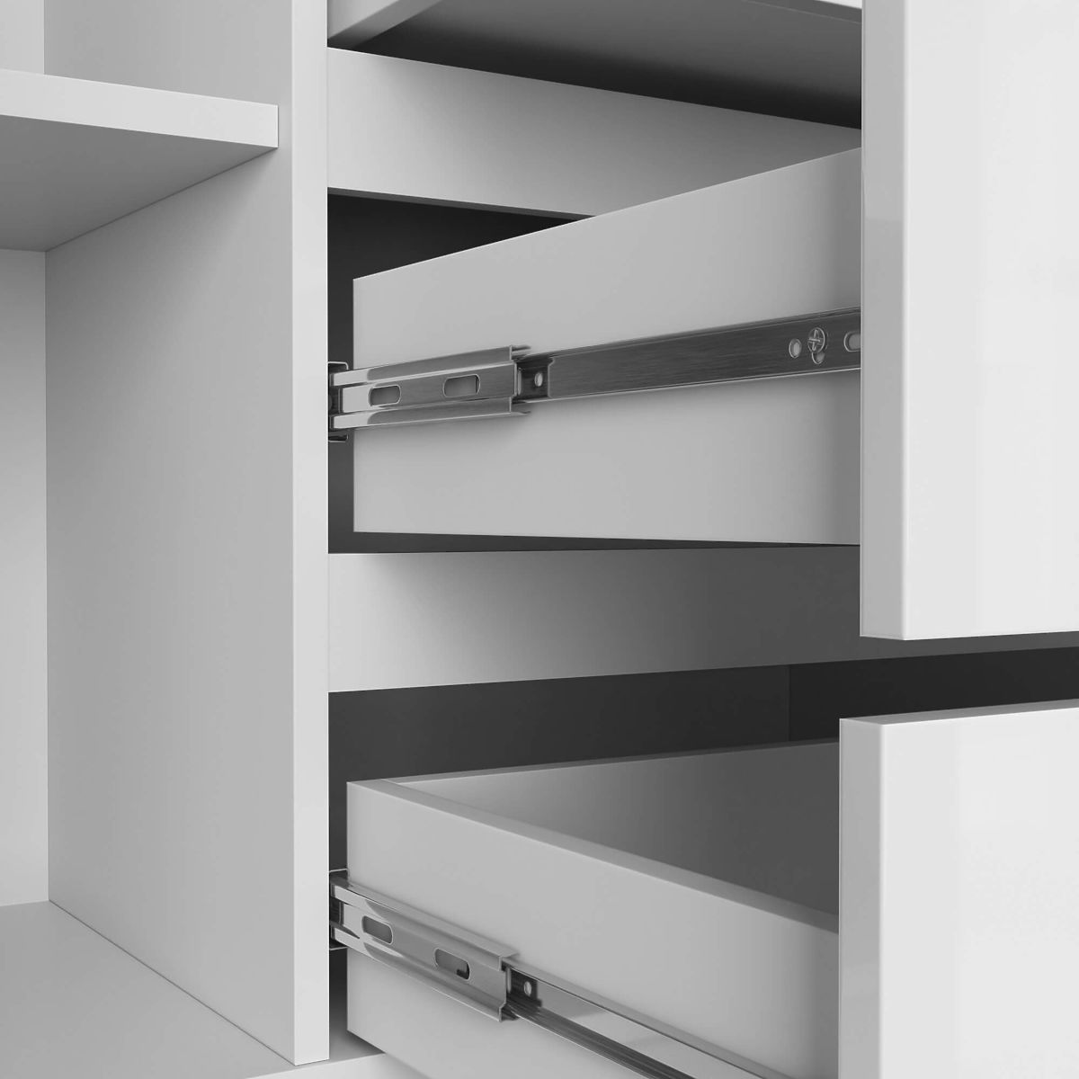 - Zásuvky se pohybují na kovových kuličkových pojezdech