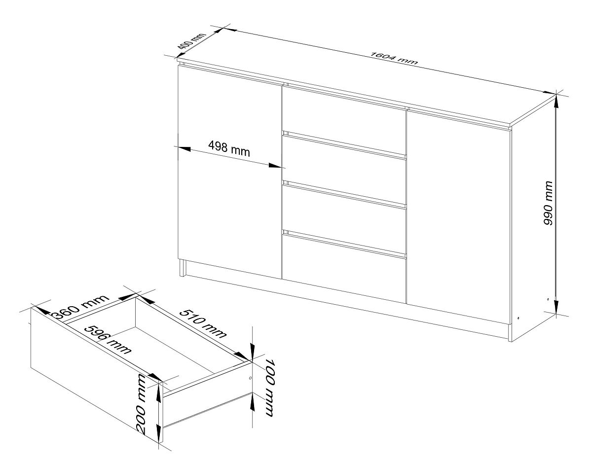 KOMODA K160 2 DVEŘE 4 ZÁSUVKY Velká a prostorná komoda v moderním designu.