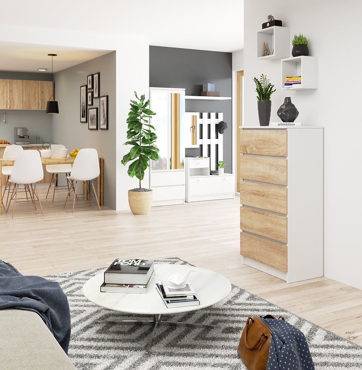 Komoda s pěti zásuvkami v barvě bílá/dub Sonoma. .. více