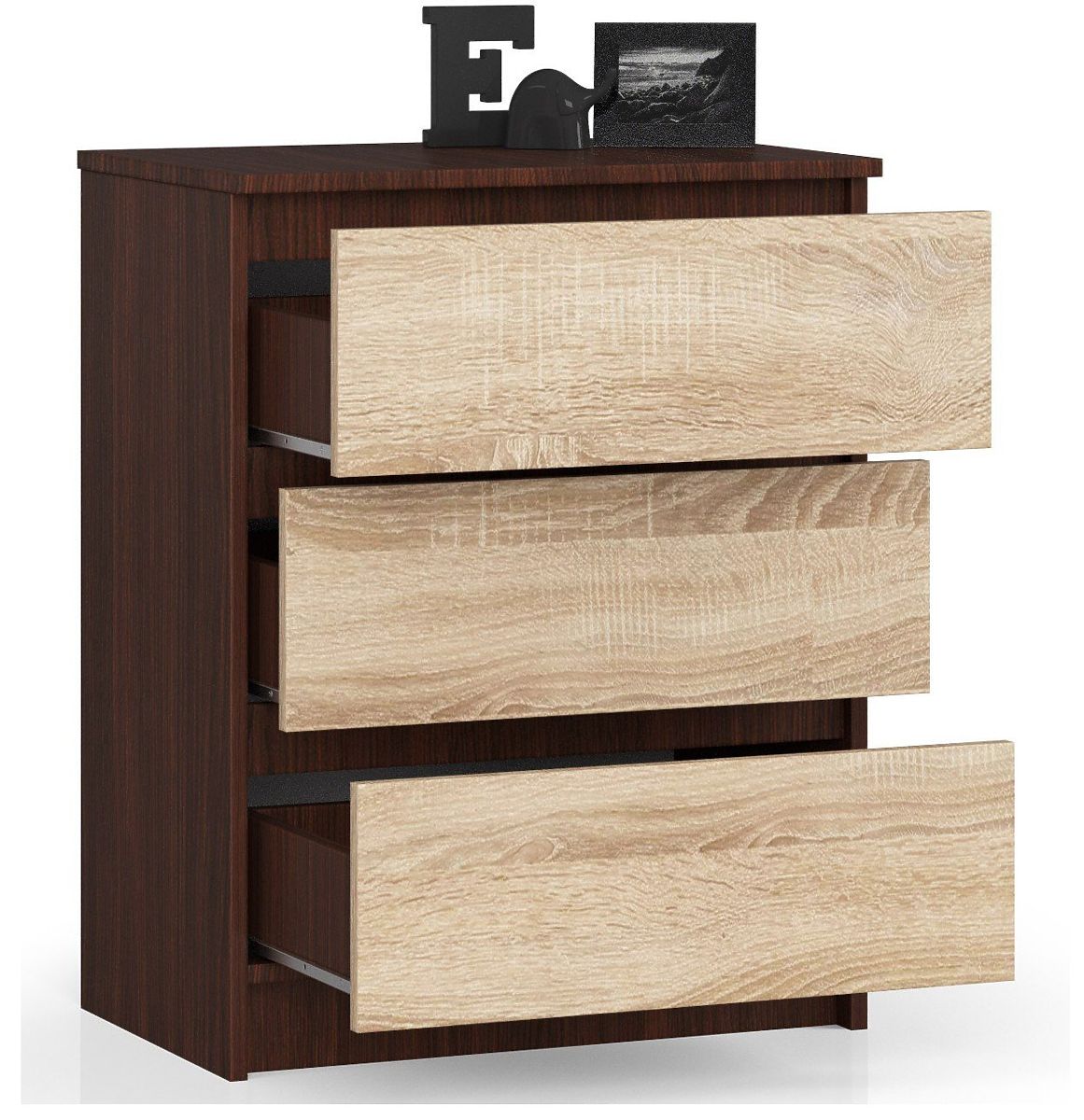 Komoda s třemi zásuvkami v barvách Wenge a Dub Sonoma. .. více