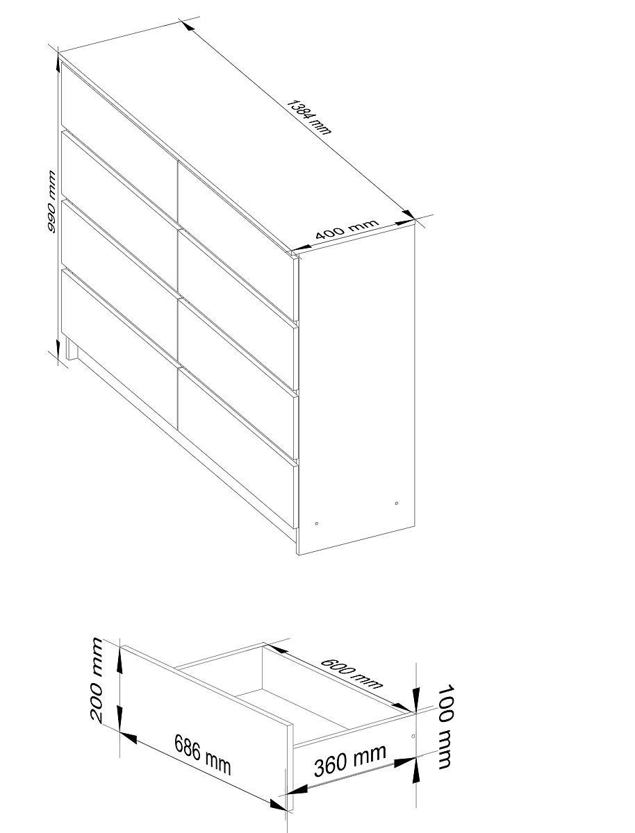 - má až 8 prostorných zásuvek, které se skvěle hodí jak do ložnice, tak do obývacího pokoje;