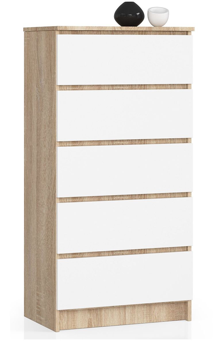Babynabytek.cz » Dětský nábytek / Komody a skříně / Komody / KOMODA K60 5SZ CLP PK DUB SONOMA / BÍLÁ