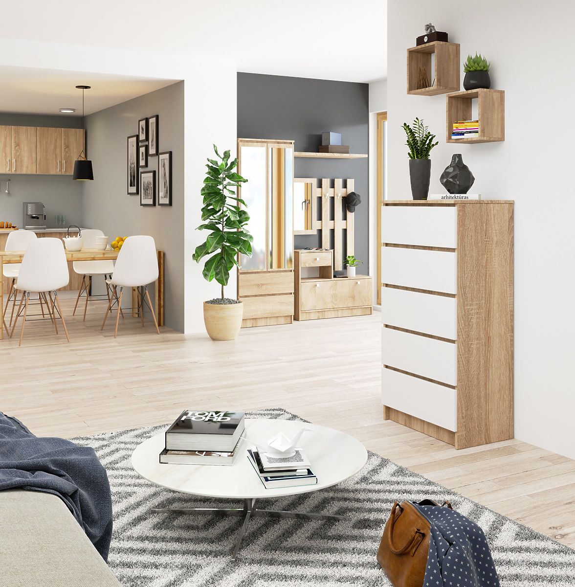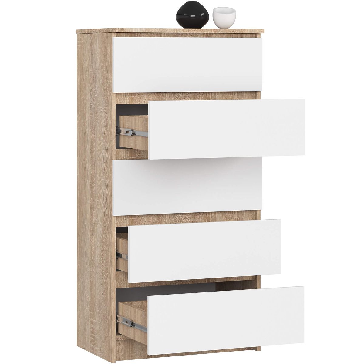Komoda s pěti zásuvkami v kombinaci dubu Sonoma a bílého. .. více