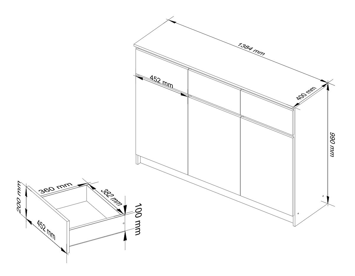 Velká, velmi prostorná a funkční komoda vyrobená z kvalitní laminované desky odolné proti oděru se jistě krásně představí v každém obývacím pokoji, ale také v jiných obytných nebo kancelářských prostorách. V nábytku je použita odolná deska značky Kronospan o tloušťce 16 milimetrů. Zásuvky se pohybují na kovových kolejnicích, takže je nábytek snadno použitelný v každodenním životě. Hrany nábytku jsou olepeny ABS hranou, která poskytuje ochranu proti poškození. Produkt je určen k samostatné montáži. Univerzální barvy wenge a sonoma se skvěle kombinují a tvoří nadčasový celek. Pokud očekáváte od ideální komody vysokou kvalitu, atraktivní design a přijatelnou cenu, tato nabídka je určena právě pro vás.