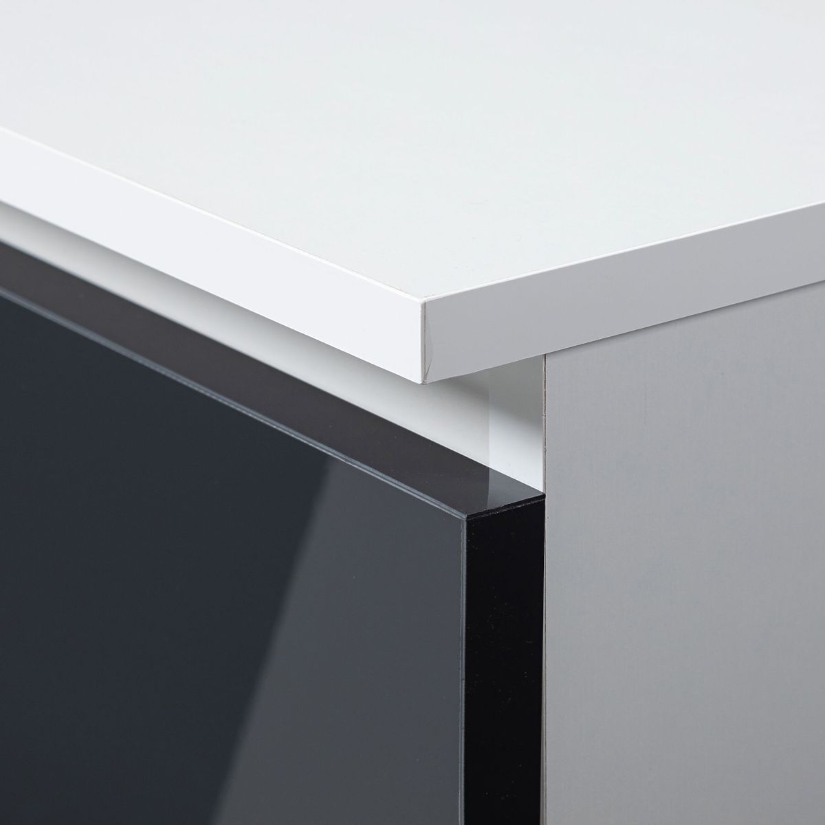 Komoda K 120 cm se vyznačuje neobvyklou kombinací barev. Čela nábytku jsou vyrobena v lesklém grafitu a spojena s bílým matným korpusem. Mat a lesk je velmi zajímavé řešení a zároveň mimořádně univerzální. Díky tomu styl nábytku zapadá do různých aranžmá, např. stylu glamour a newyorského, který oceňuje lesk a lesklé povrchy, nebo minimalistických a moderních aranžmá.