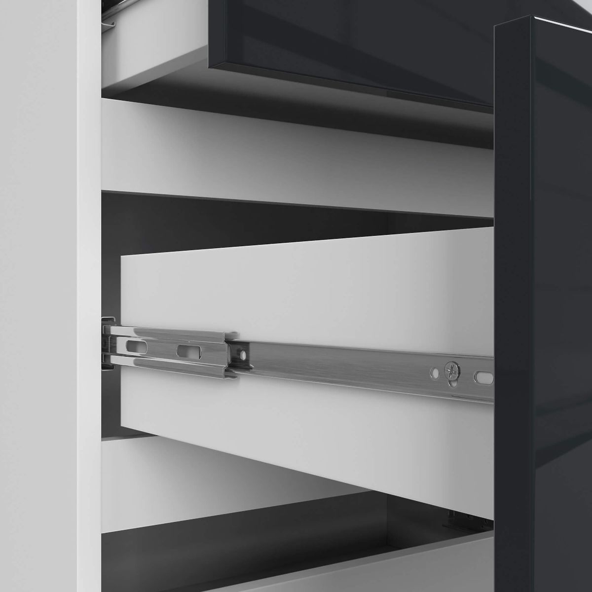 - Zásuvky se pohybují na kovových kuličkových pojezdech