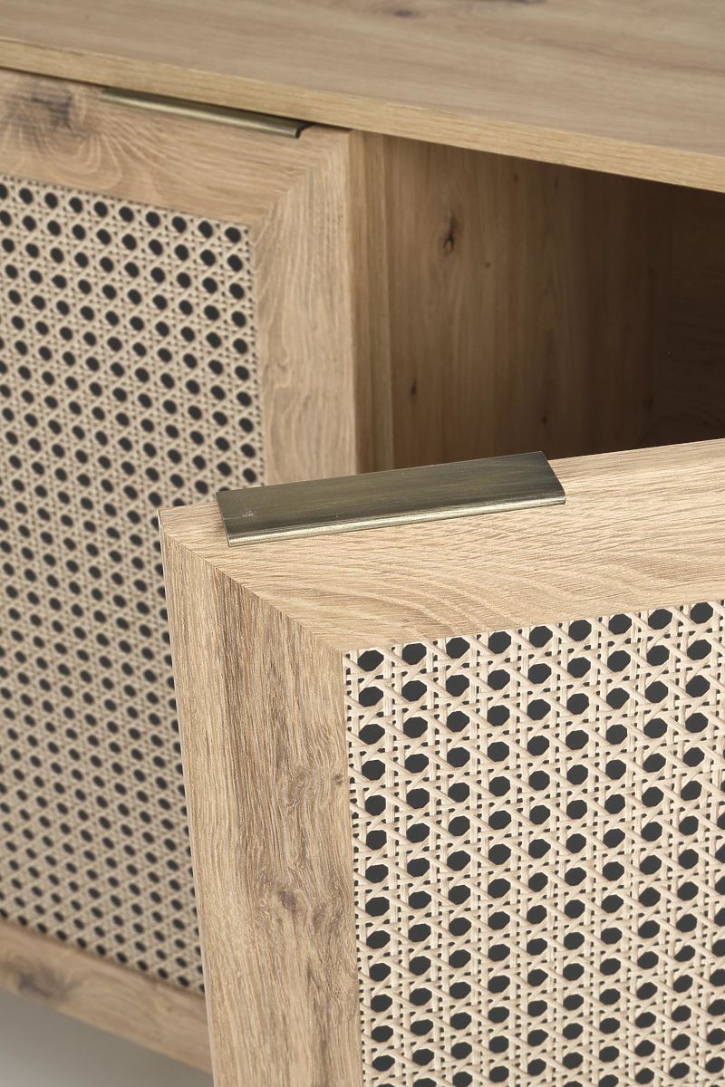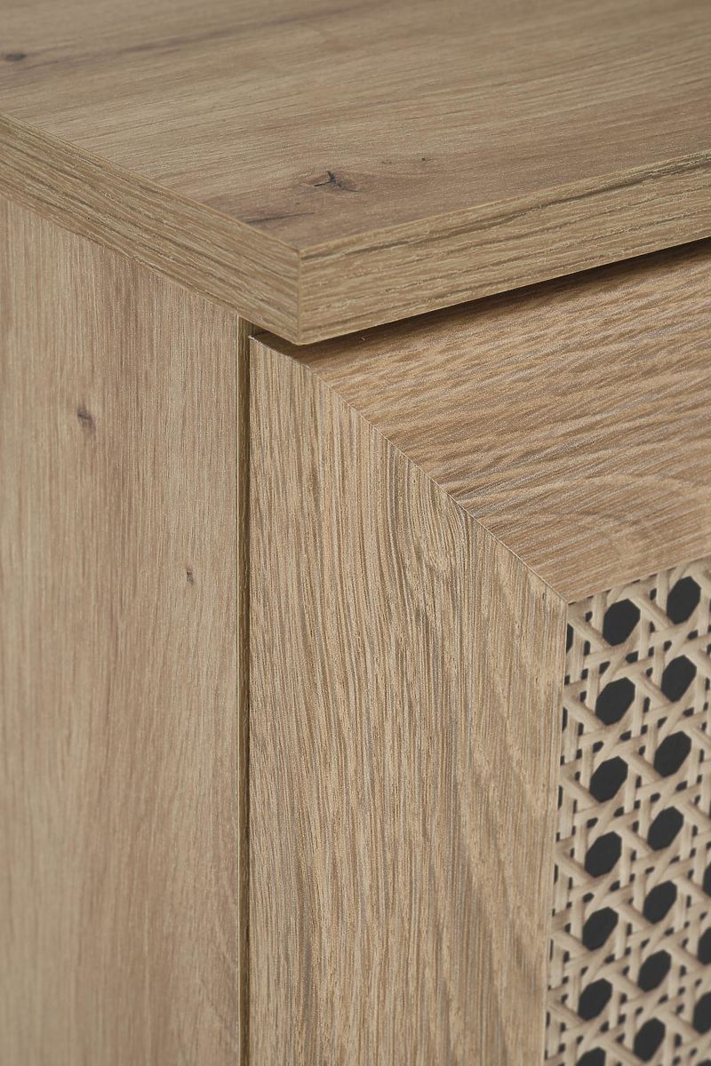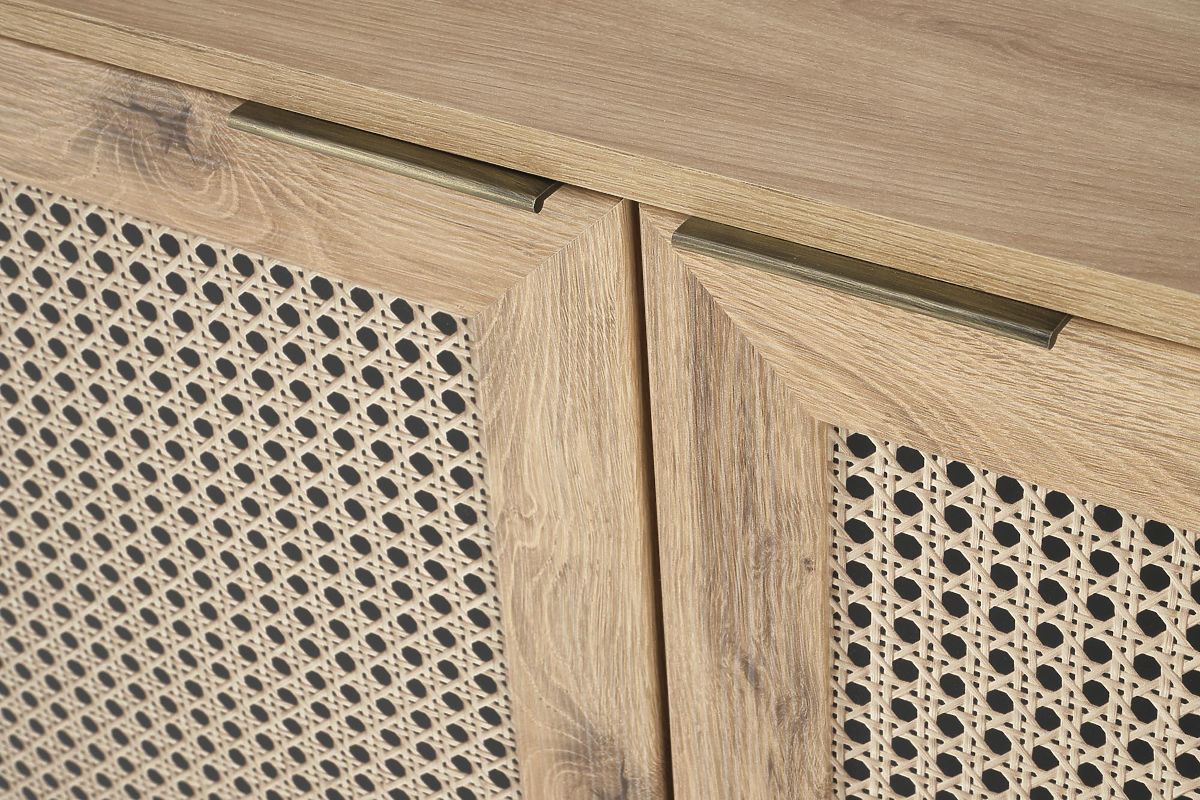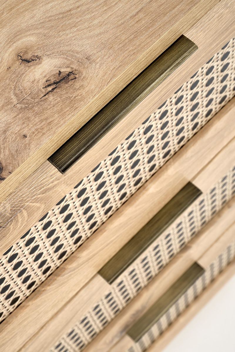 Dekor dub artisan společně s módními vložkami ve vzoru vídeňského copu dodává komodě jedinečný boho nádech, který okamžitě upoutá pozornost.